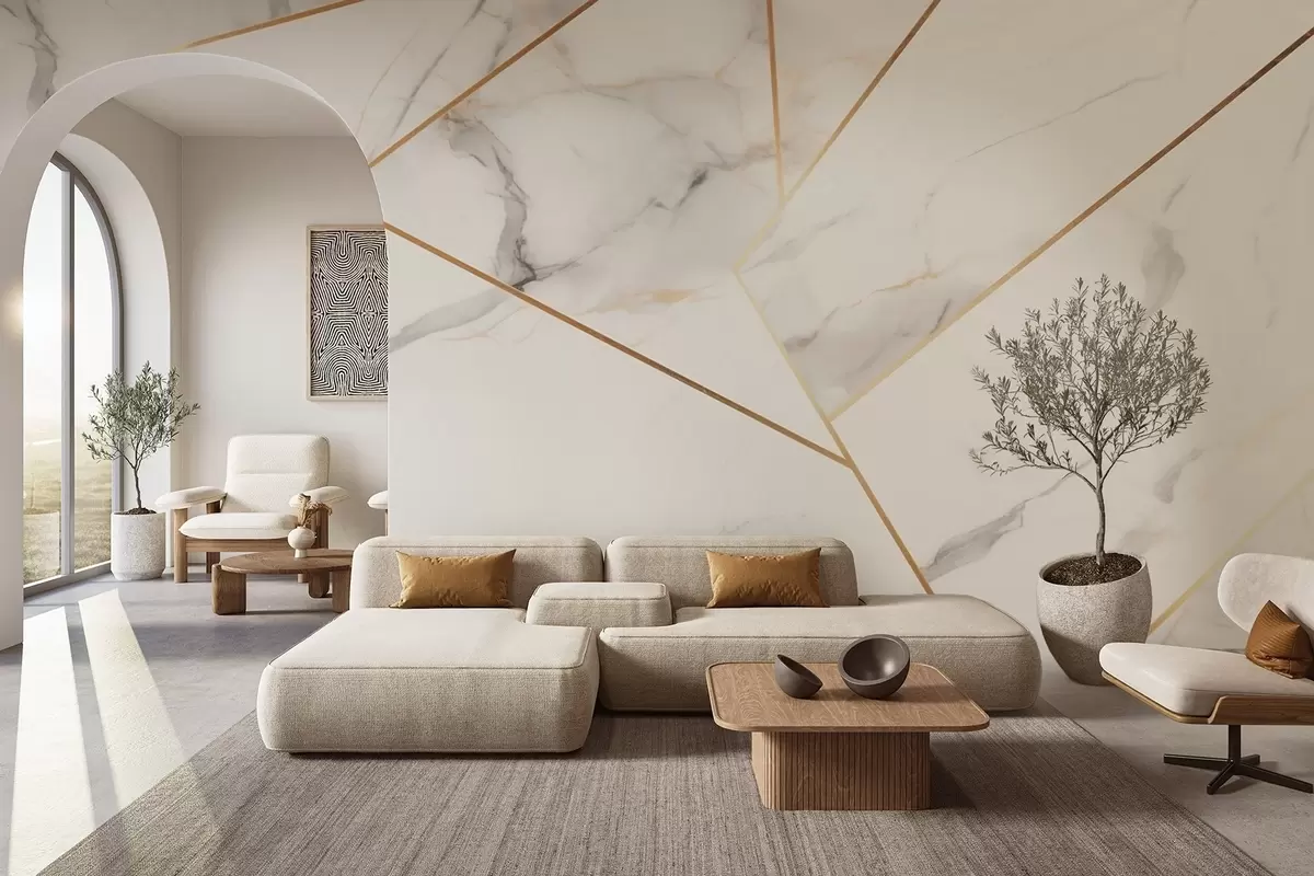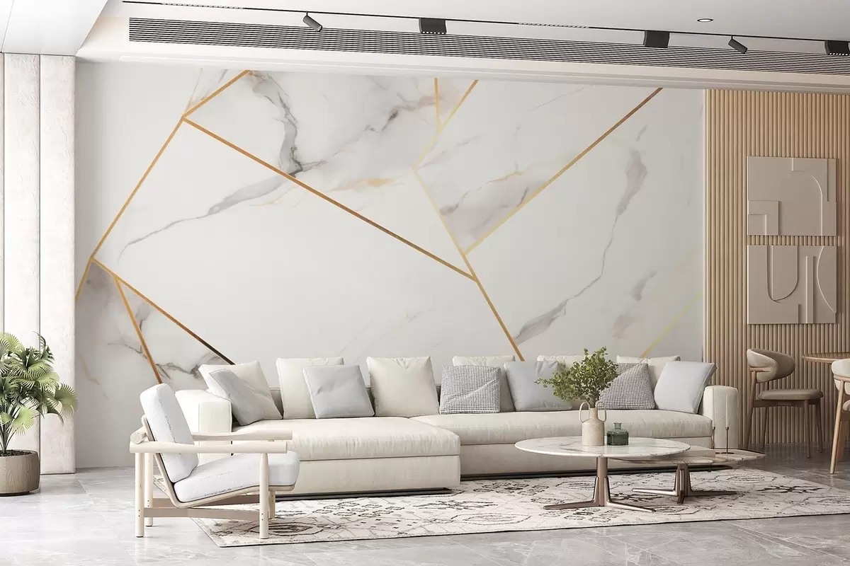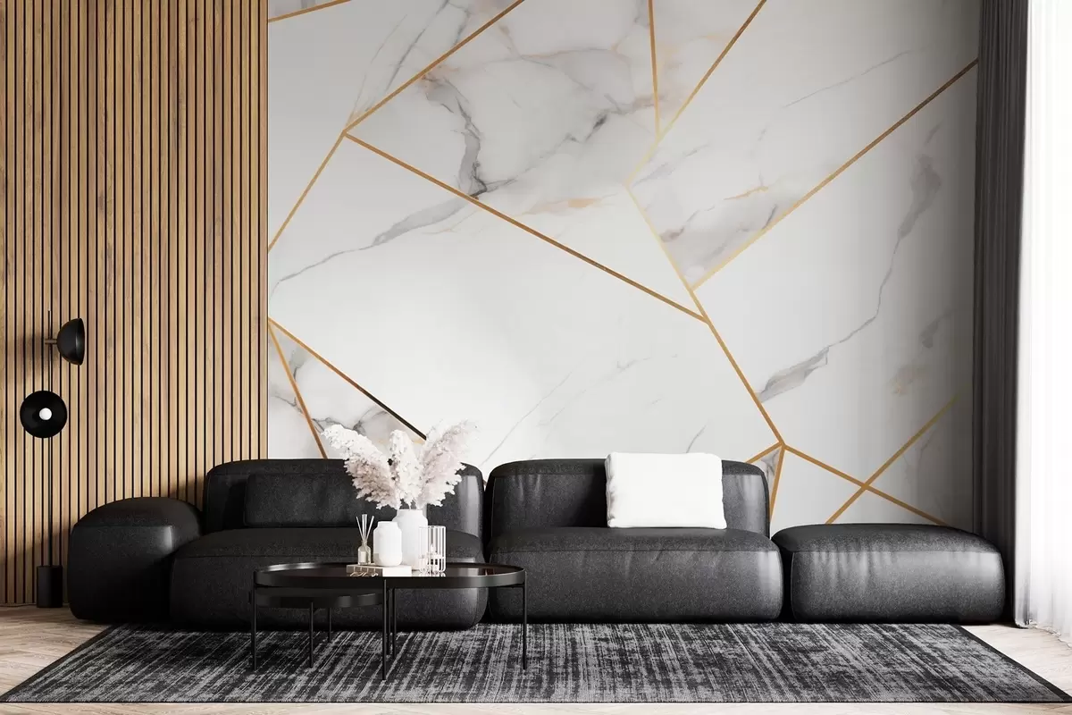 Fototapeta Imitacja marmurowej powierzchni z żółtym geometrycznym wzorem Nr w09363