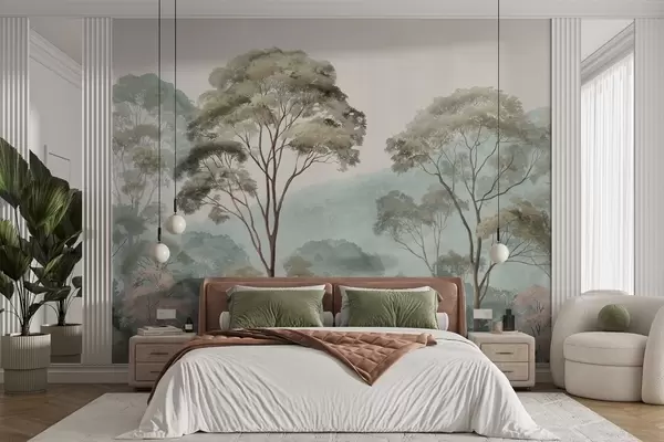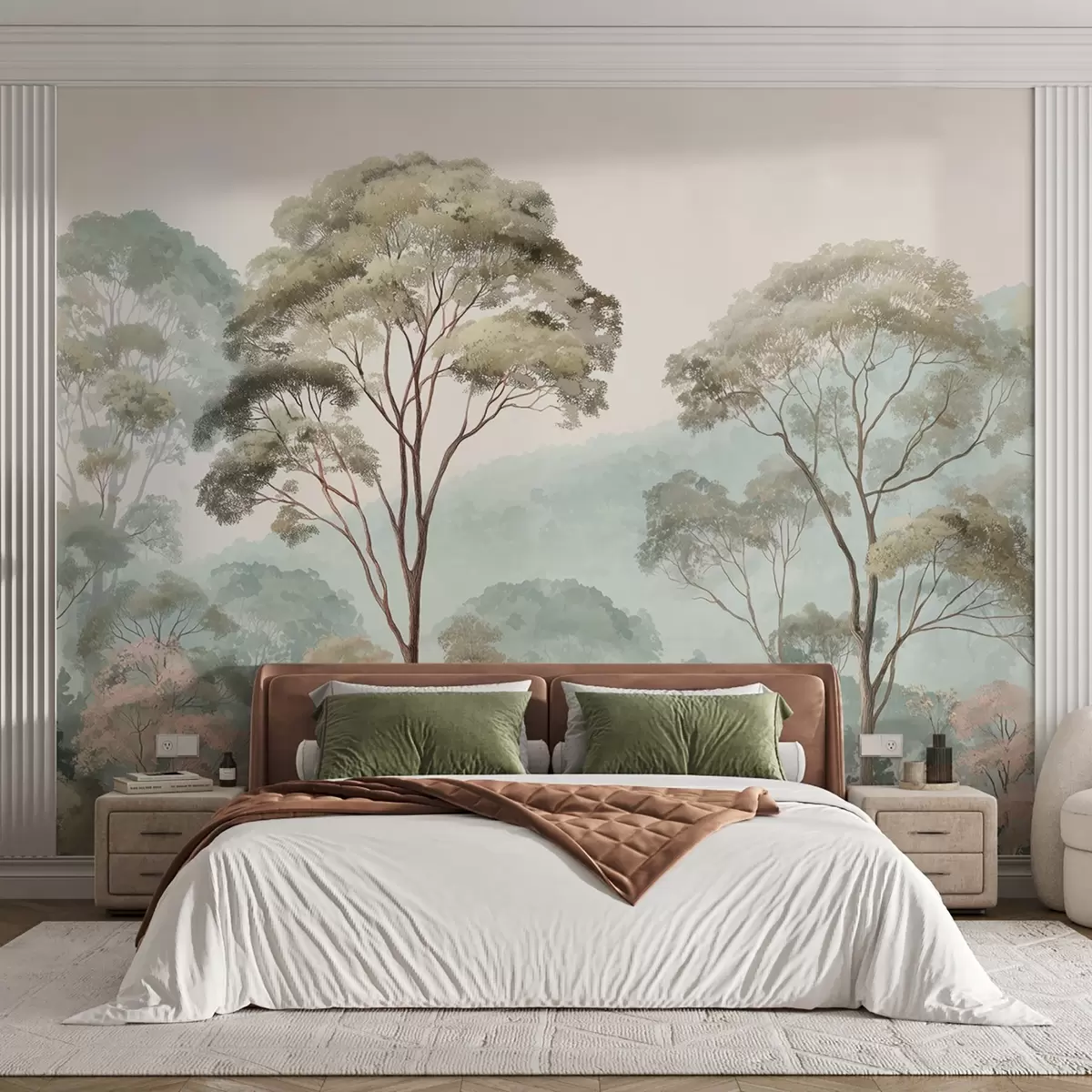 Fototapeta Mglisty poranek w lesie w stylu akwareli Nr w09405