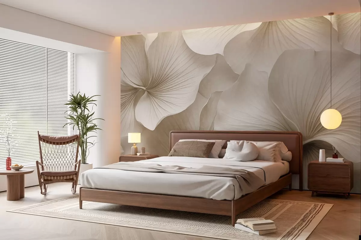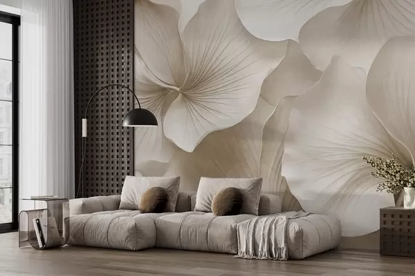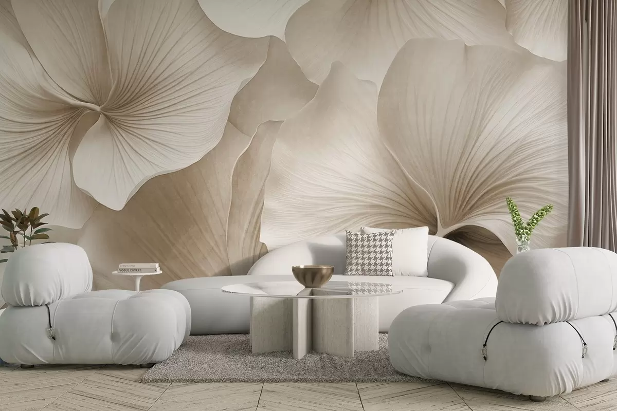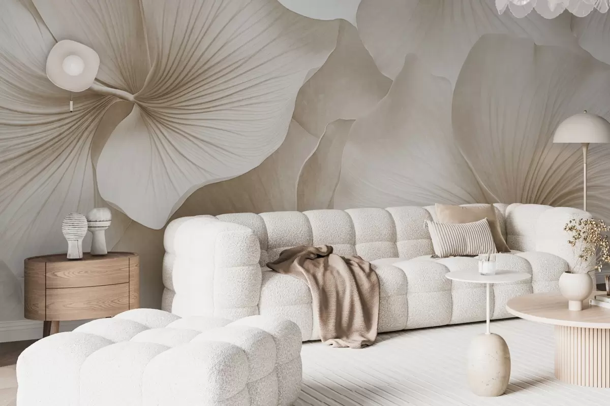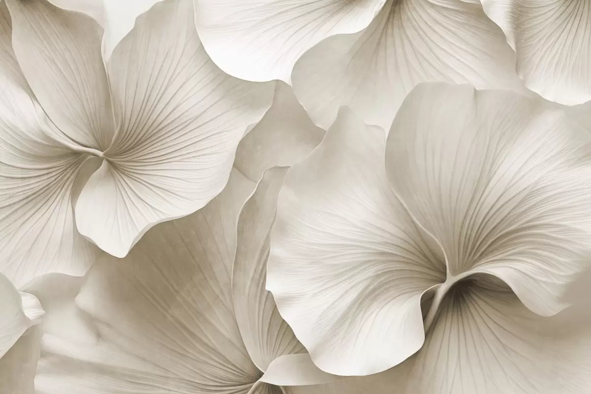 Fototapeta Białe i beżowe liście miłorzębu, miękka faktura, abstrakcyjne kwiatowe tło, minimalistyczny nowoczesny styl Nr w09421v1