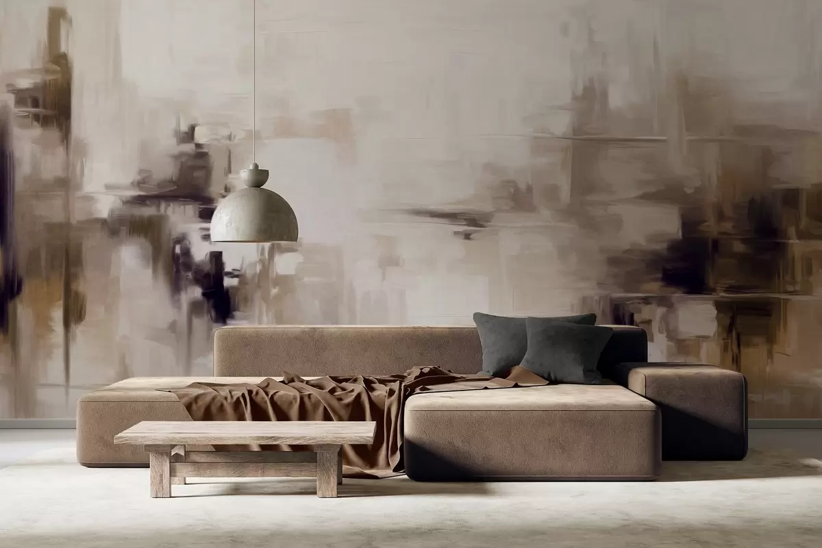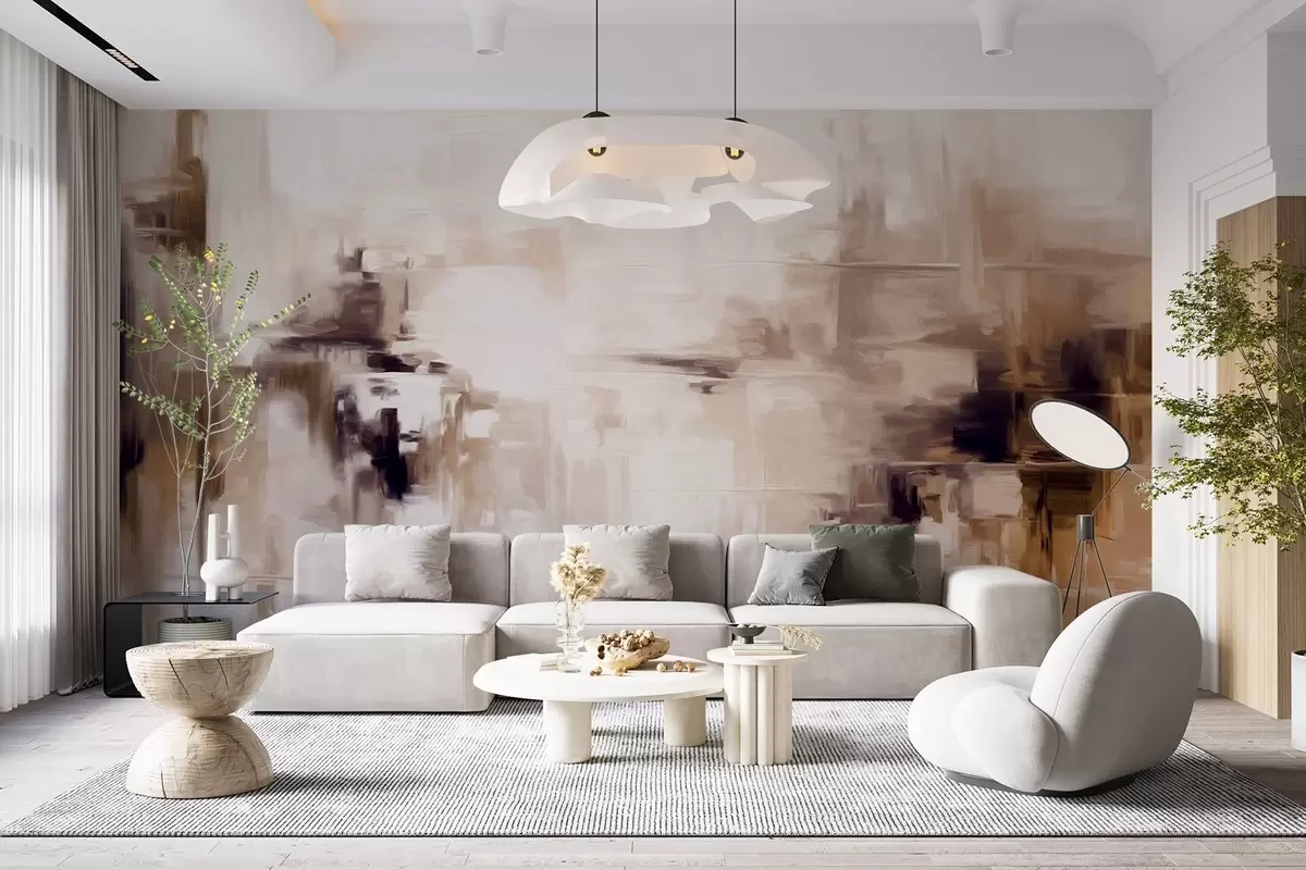 Fototapeta Abstrakcyjna imitacja pejzażu o fakturze z brązowymi i białymi pociągnięciami pędzla, styl nowoczesny Nr w09422v1
