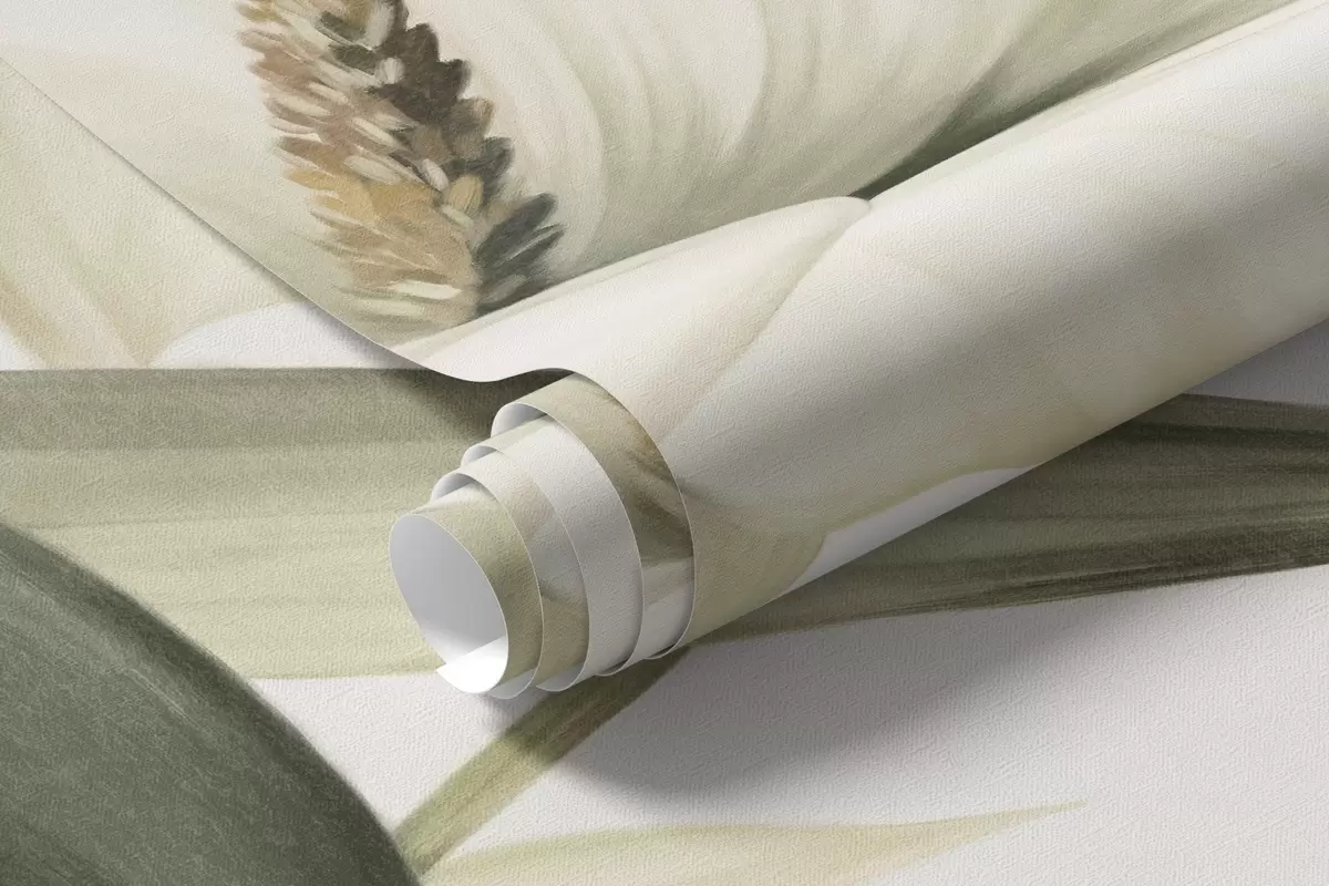 Fototapeta Białe lilie calla i zielone tropikalne liście, ilustracja botaniczna, jasne tło, styl vintage, teksturowane Nr w09423
