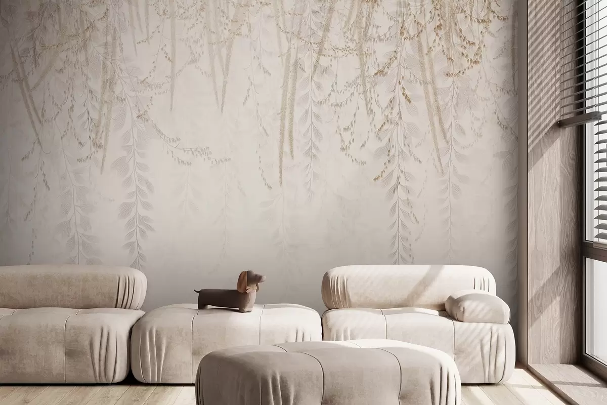 Fototapeta Jasne wiszące liście i gałęzie w odcieniach beżu Nr w09433