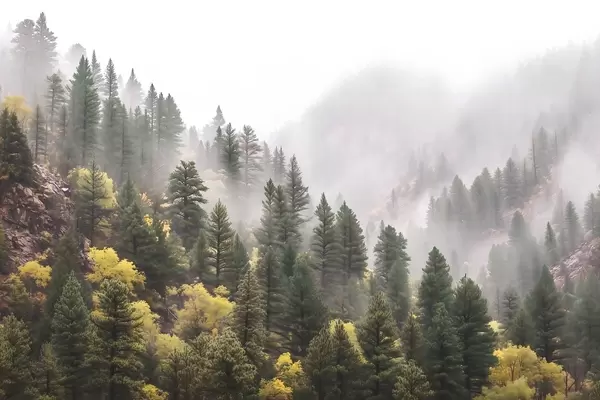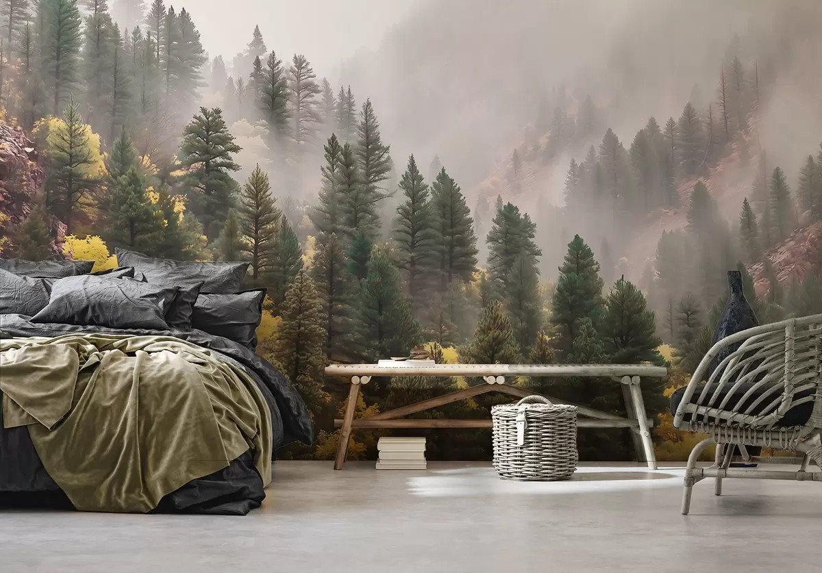 Fototapeta Atmosferyczny, mglisty las sosnowy w górach Nr w09463