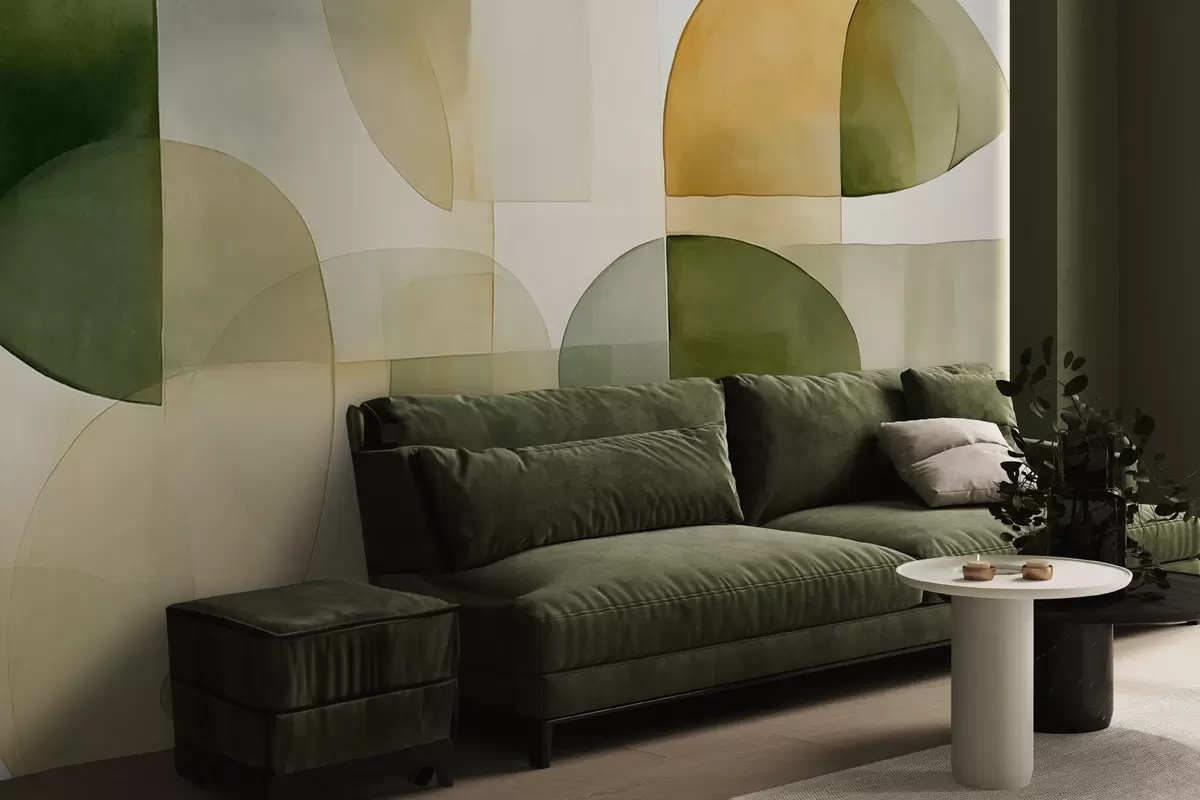 Fototapeta Abstrakcyjne, teksturowane kształty w odcieniach zieleni i żółci, stonowane kolory, minimalistyczna kompozycja, neutralne tło Nr w09467