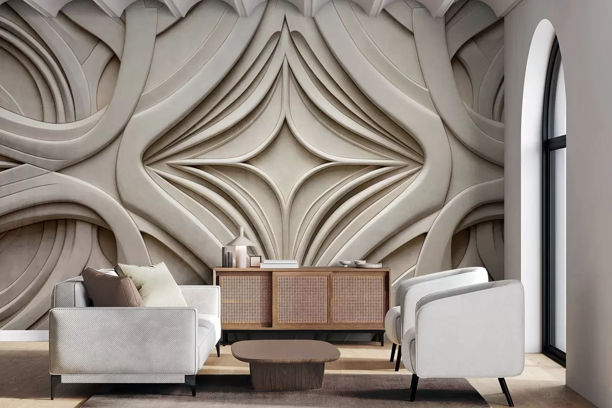Fototapeta Abstrakcyjny, symetryczny wzór geometryczny, jasnobeżowy kolor, styl art deco, misterne detale Nr w09473