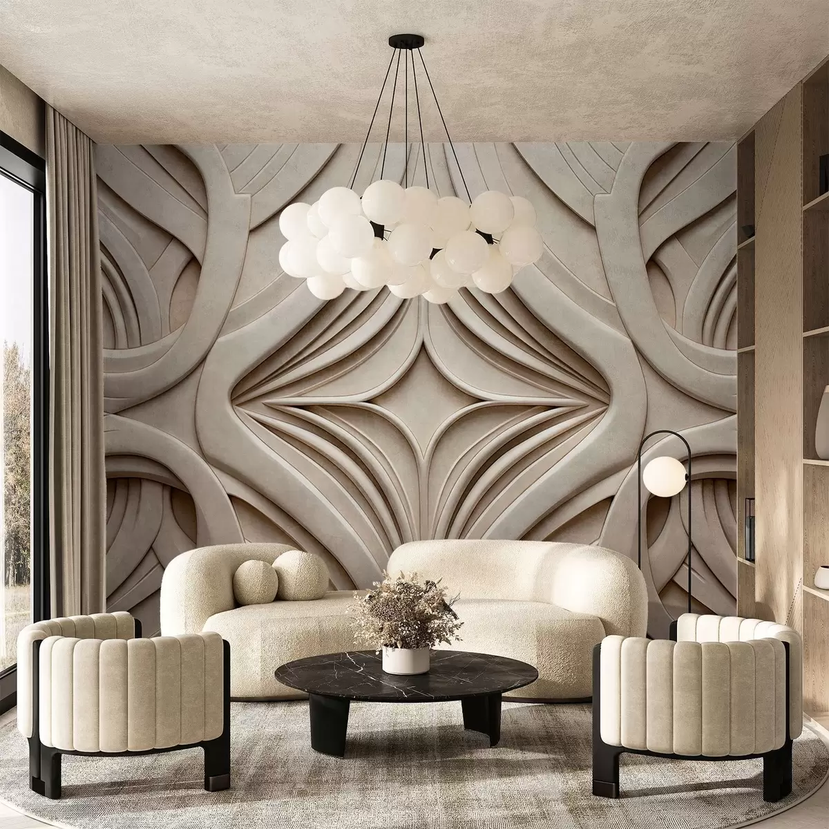 Fototapeta Abstrakcyjny, symetryczny wzór geometryczny, jasnobeżowy kolor, styl art deco, misterne detale Nr w09473