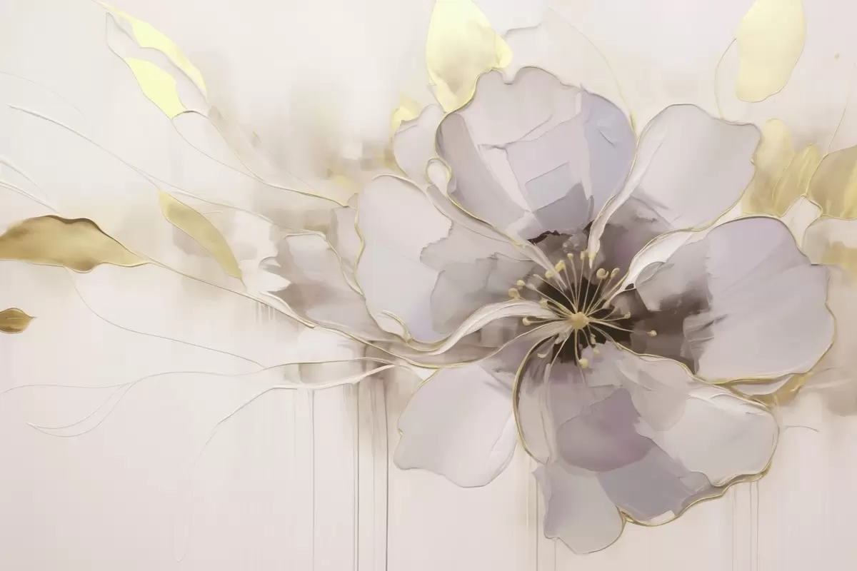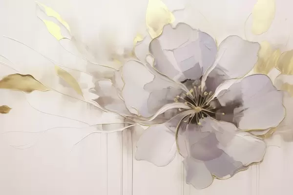 Fototapeta Niebieski kwiat z żółtymi akcentami w abstrakcyjnym stylu pociągnięć pędzlem Nr w09505