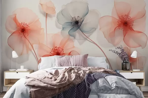 Fototapeta Przezroczyste kwiaty w odcieniach czerwieni i błękitu Nr w09515