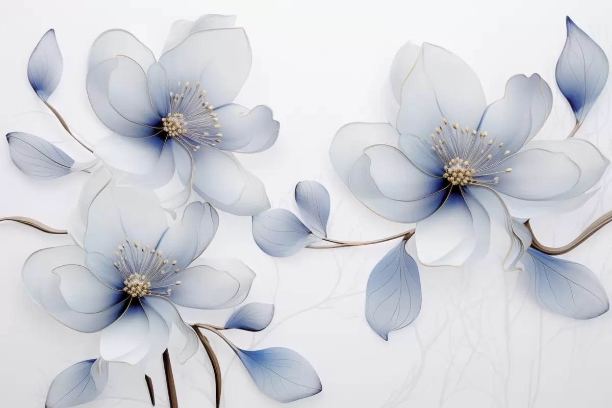 Fototapeta Elegancka kompozycja z kwiatów magnolii w odcieniach niebieskiego Nr w09520