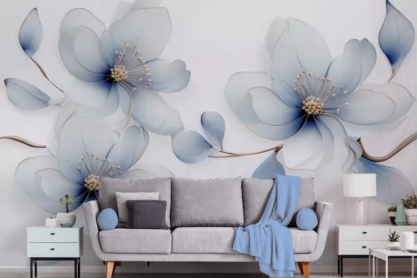 Fototapeta Elegancka kompozycja z kwiatów magnolii w odcieniach niebieskiego Nr w09520