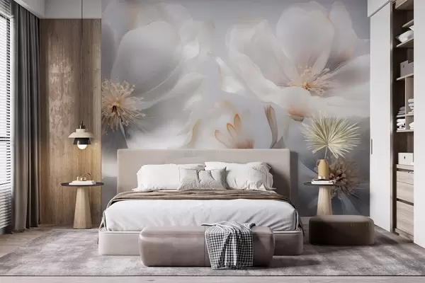 Fototapeta Kwiaty o perłowym połysku w odcieniach beżowo-szarym i mleczno-kremowym Nr w09527