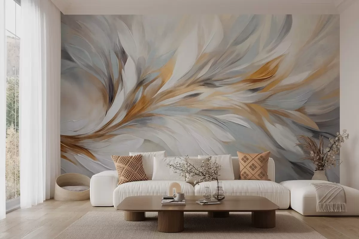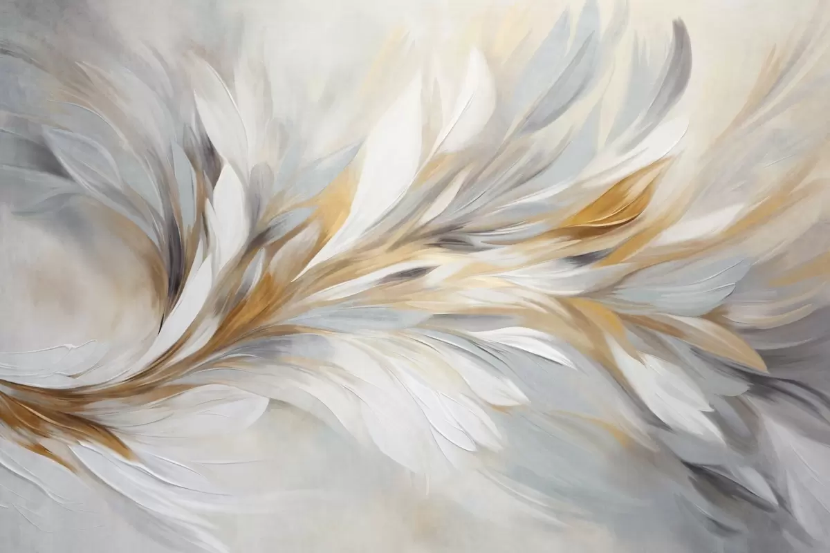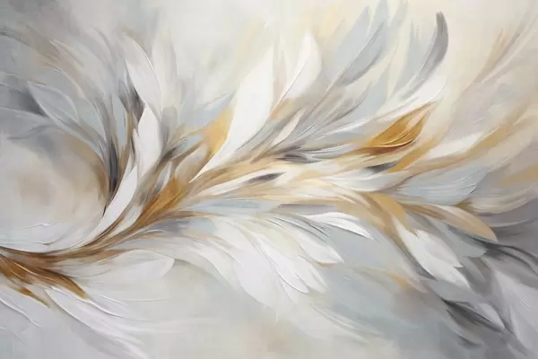 Fototapeta Styl malarstwa abstrakcyjnego z białymi, żółtymi i szarymi teksturowanymi pociągnięciami pędzla na delikatnym, jasnym tle. Nr w09552
