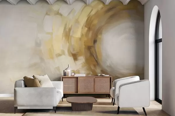 Fototapeta Abstrakcyjna imitacja malarstwa z okrągłymi, teksturowanymi pociągnięciami pędzla w kolorze żółtym i białym, tworząca wrażenie ruchu. Nr w09558