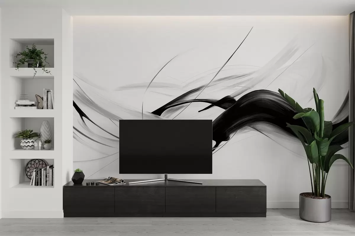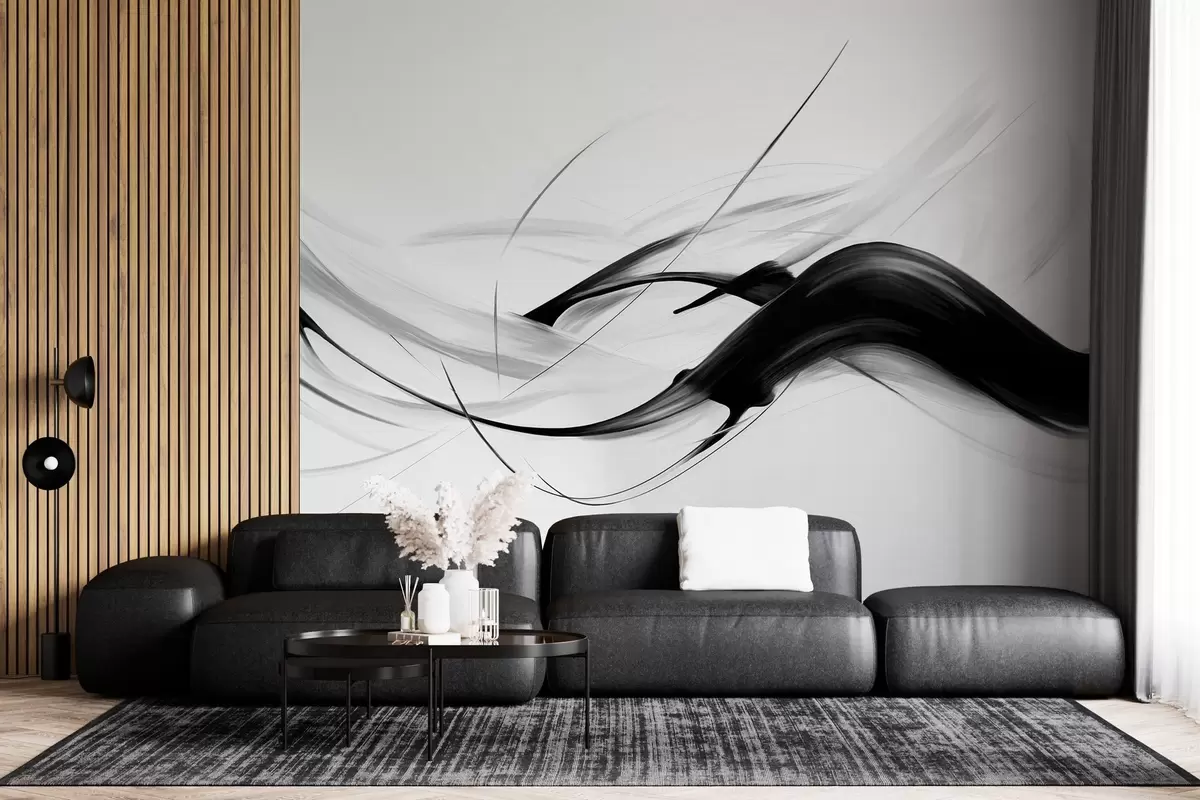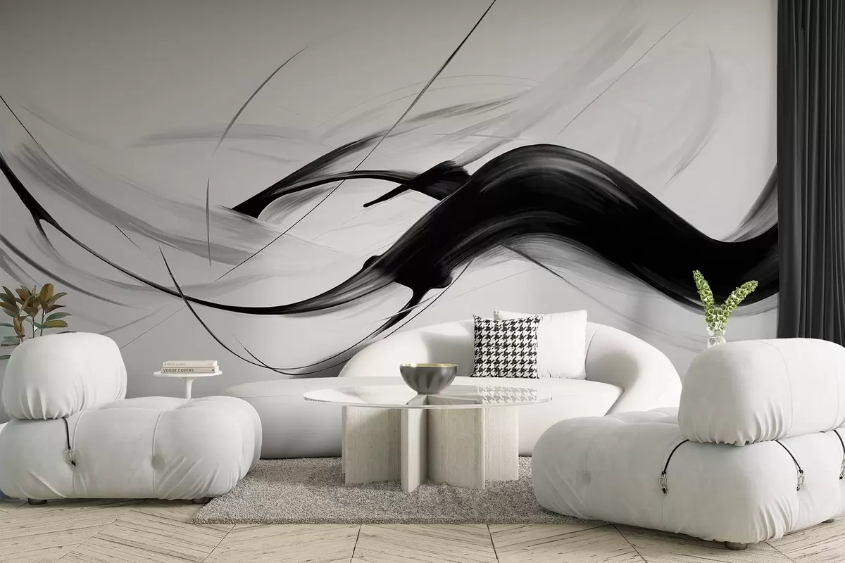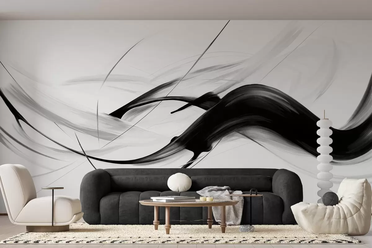 Fototapeta Abstrakcyjne czarno-białe pociągnięcia pędzla z cienkimi liniami tworzą nowoczesny wzór na jasnym tle. Nr w09605