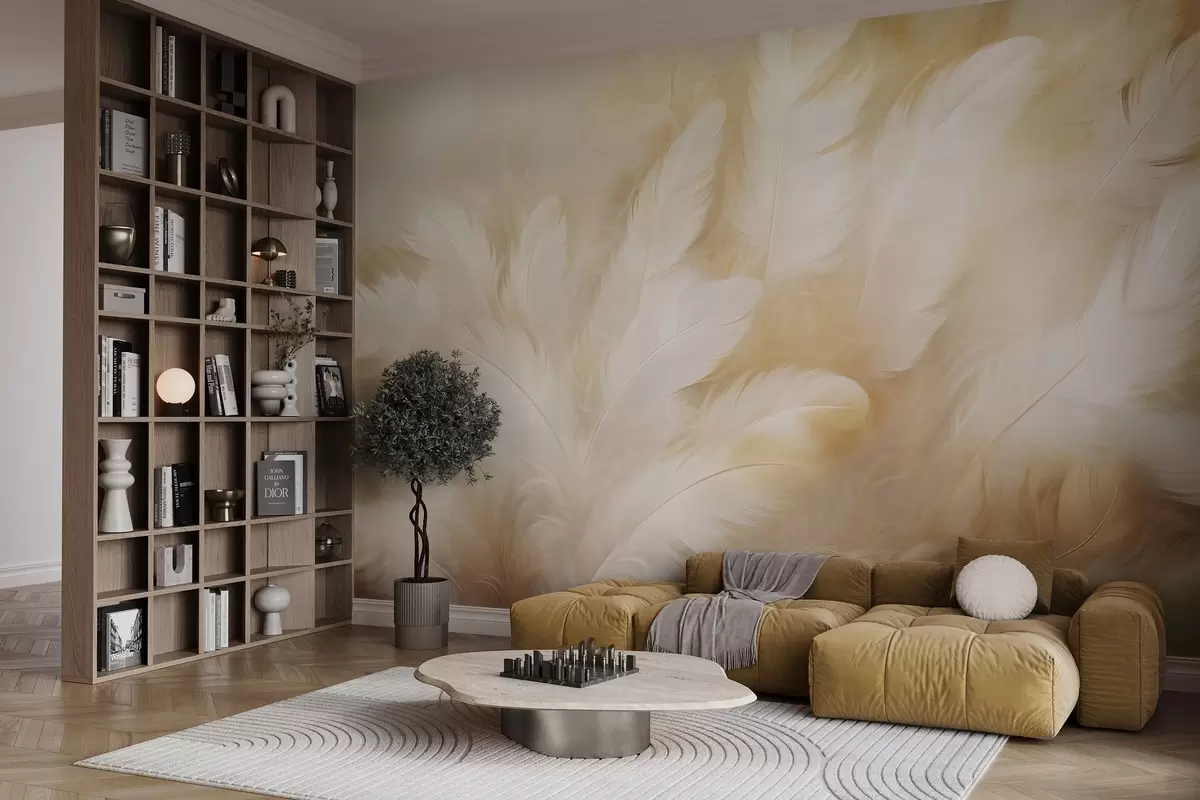 Fototapeta Białe i żółte pióra o miękkiej teksturze Nr w09606
