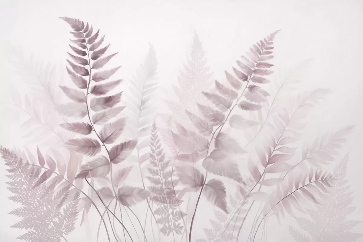 Fototapeta Teksturowane suszone liście paproci w różnych odcieniach różu, na delikatnym, jasnym tle w stylu akwareli. Nr w09615v2