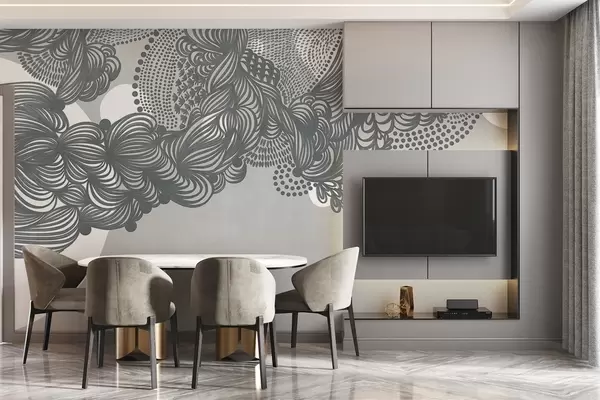 Fototapeta Abstrakcyjny wzór teksturowany na szarym tle, z misternymi liniami i kropkowanymi teksturami. Nr w09621v1