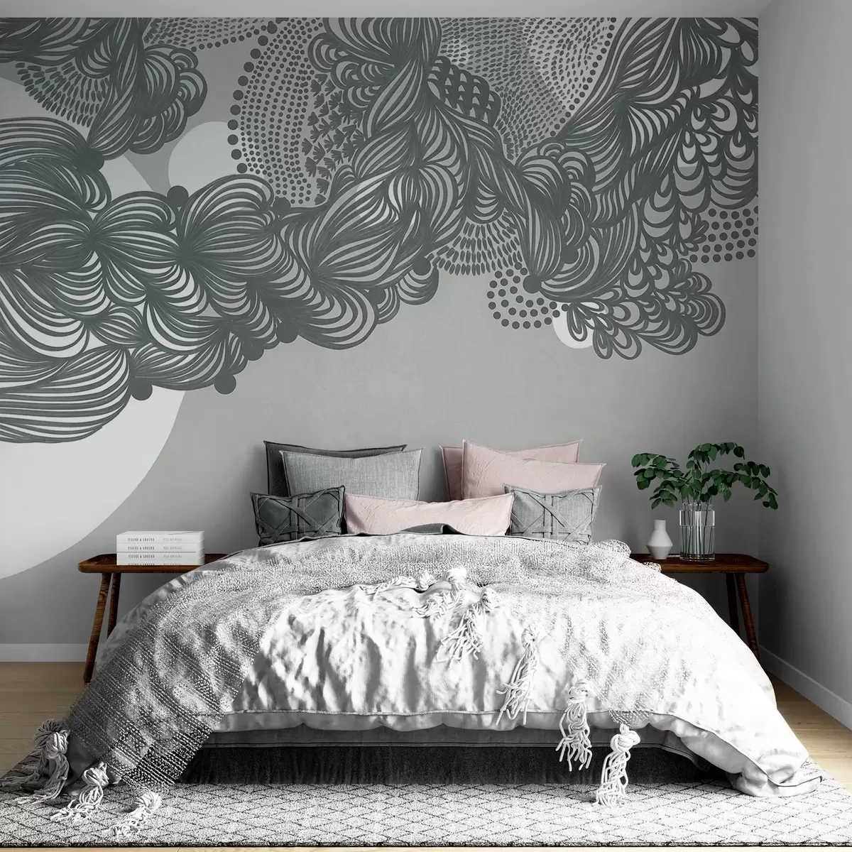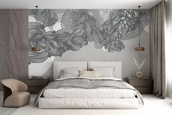 Fototapeta Abstrakcyjny wzór teksturowany na szarym tle, z misternymi liniami i kropkowanymi teksturami. Nr w09621v1