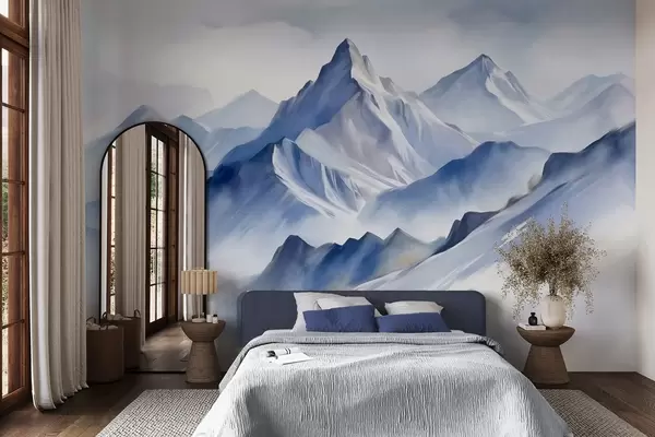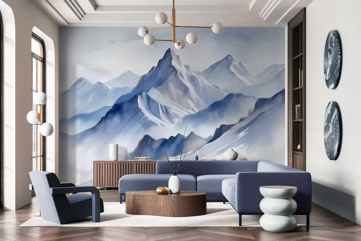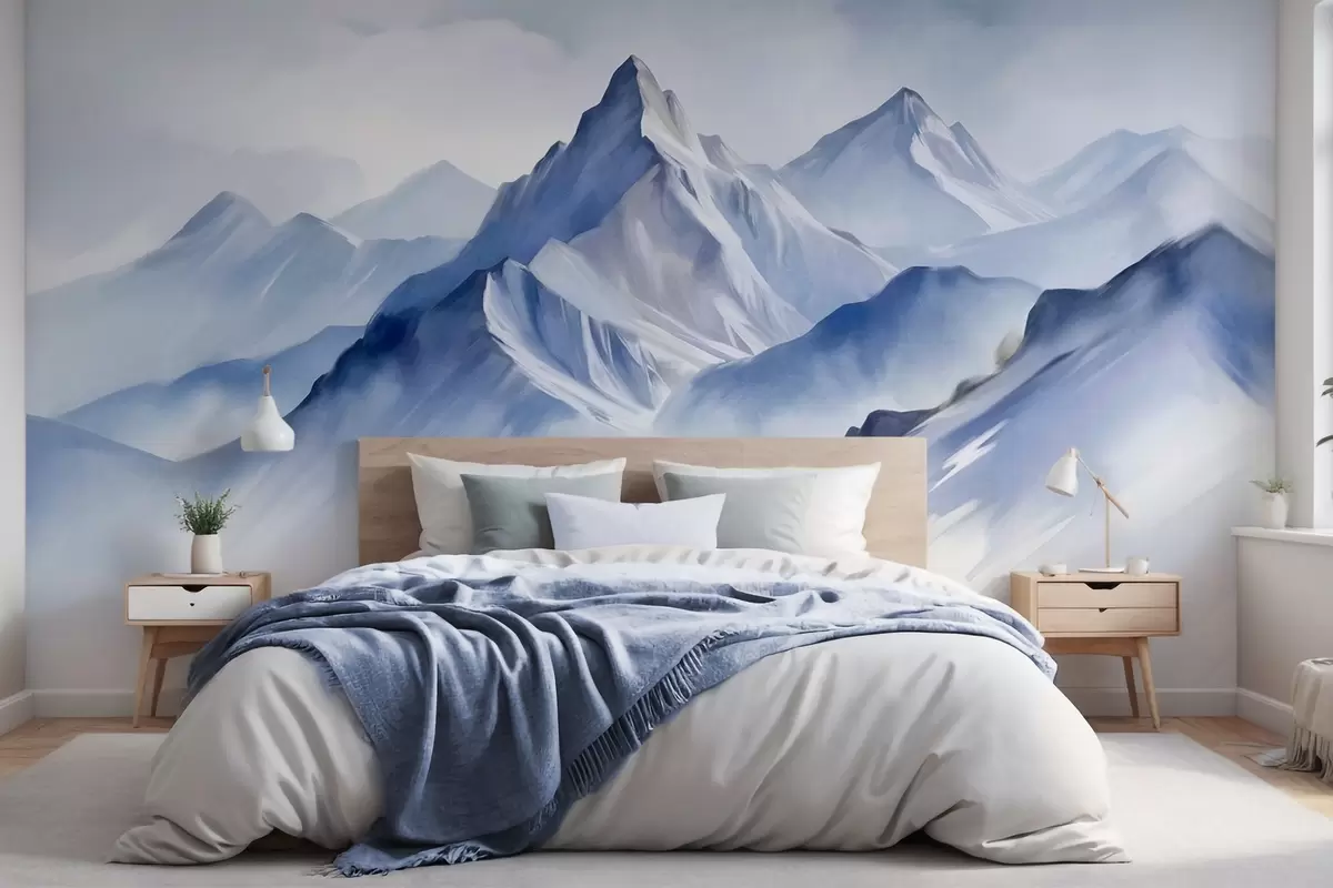 Fototapeta Teksturowane ośnieżone góry z delikatnym efektem akwareli i paletą niebieskiego i białego koloru. Nr w09630