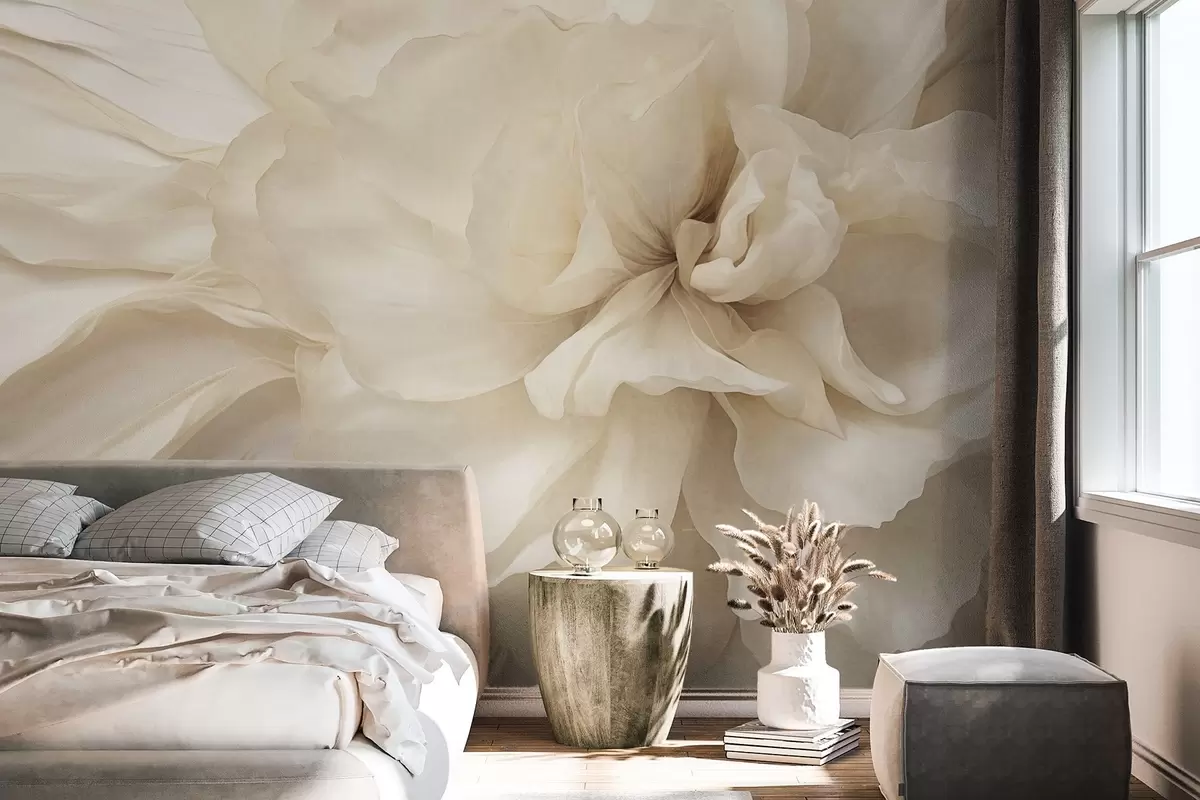 Fototapeta Delikatny, jasny kwiat o fakturze i półprzezroczystych płatkach, miękkie abstrakcyjne tło Nr w09632