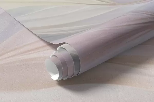 Fototapeta Miękkie, pastelowe liście i pióra w odcieniach różu, błękitu i żółci, abstrakcyjny i teksturowany nadruk Nr w09634