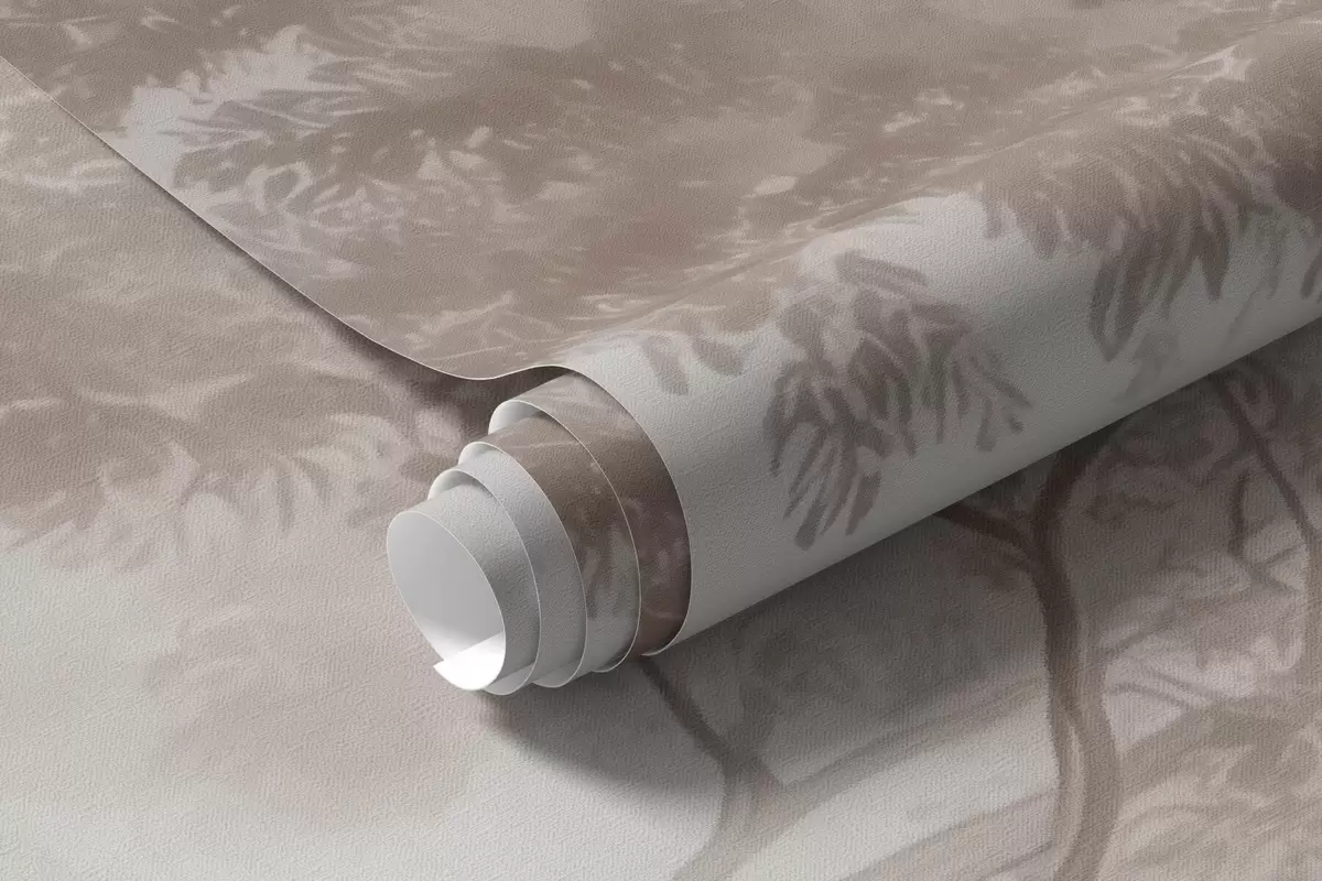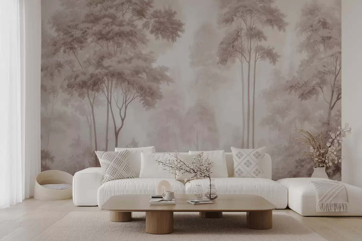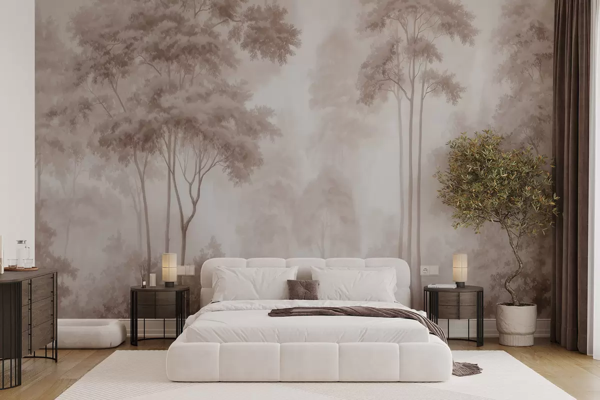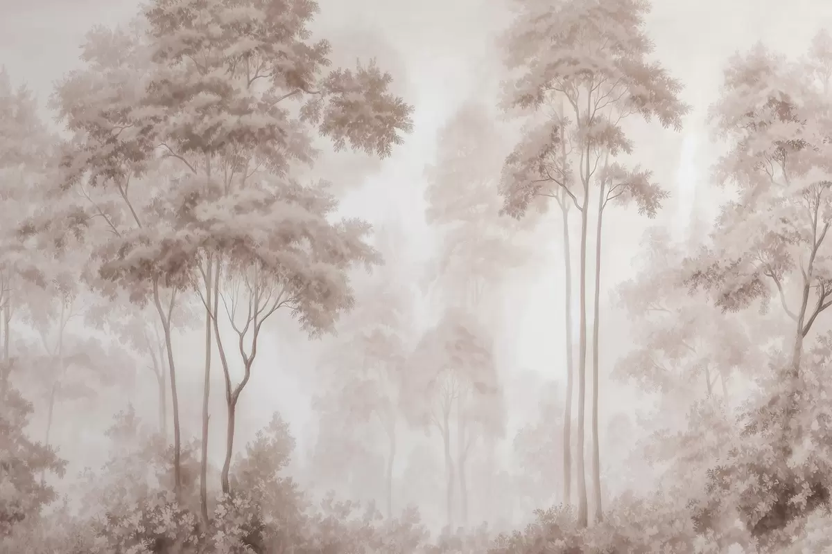 Fototapeta Abstrakcyjny pejzaż leśny w dymnych beżowych odcieniach, nadający wrażenie głębi Nr w09657