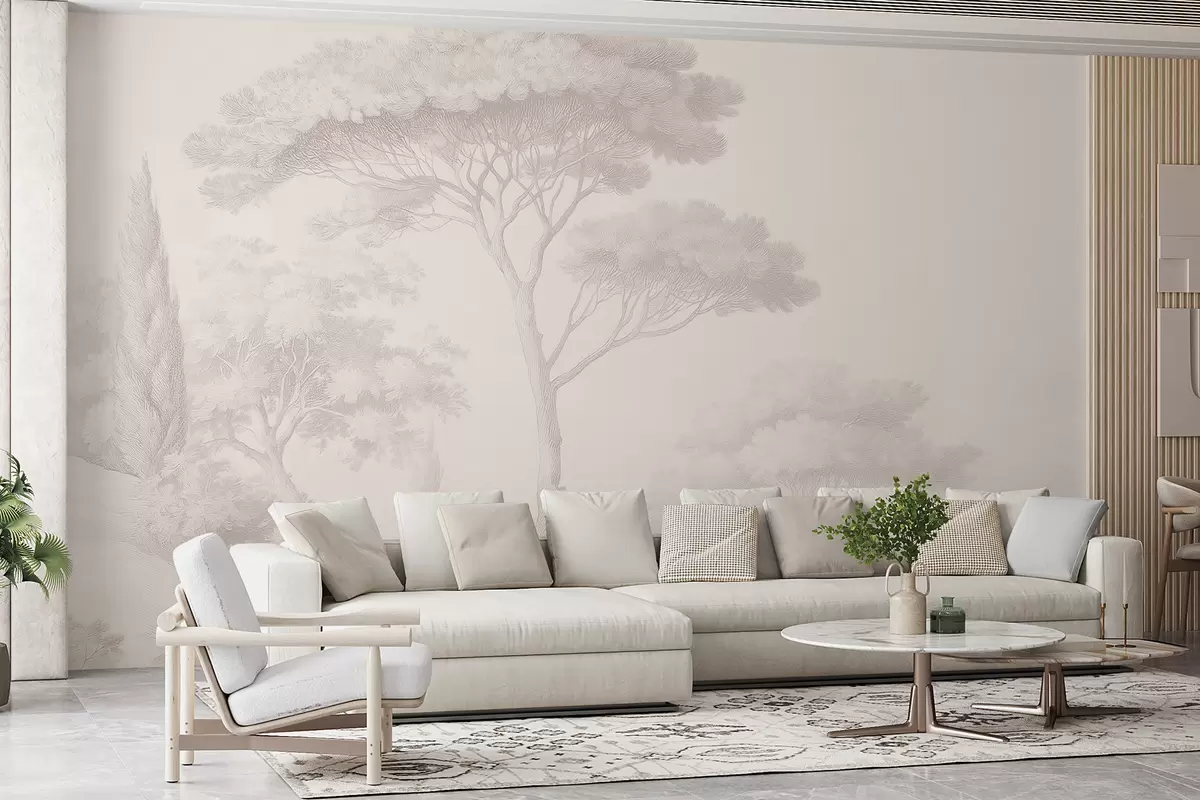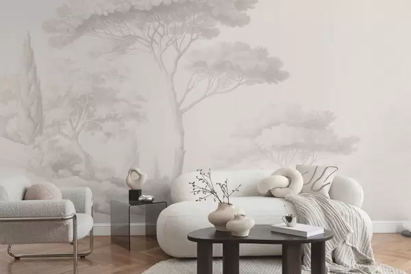Fototapeta Spokojny krajobraz leśny w beżowej palecie kolorów Nr w09685