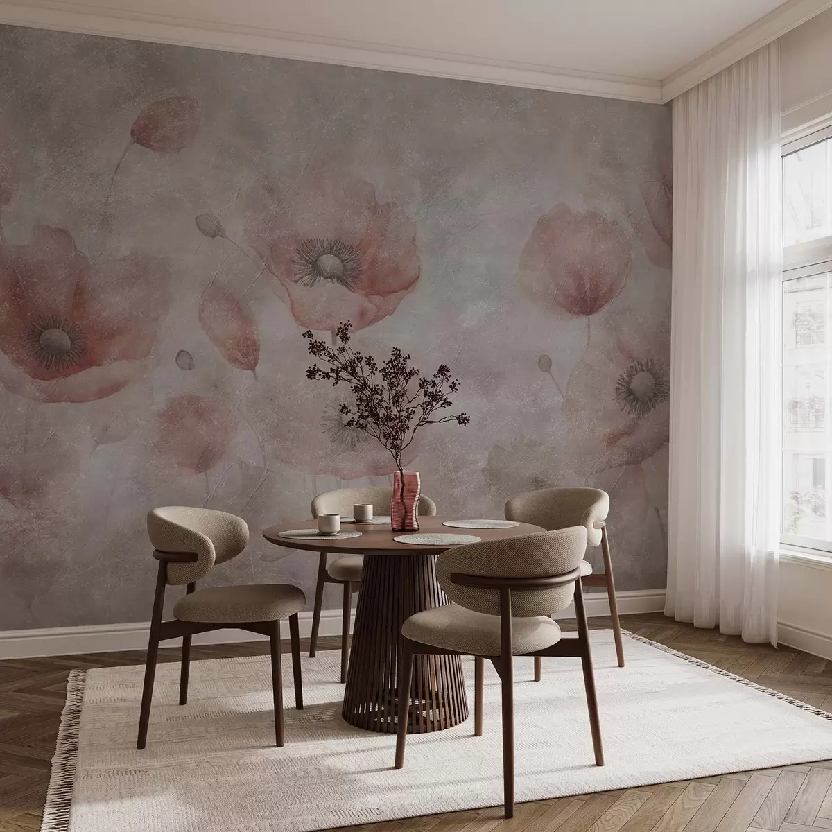 Fototapeta Duże kwiaty maku na ścianie z efektem postarzania Nr w09686