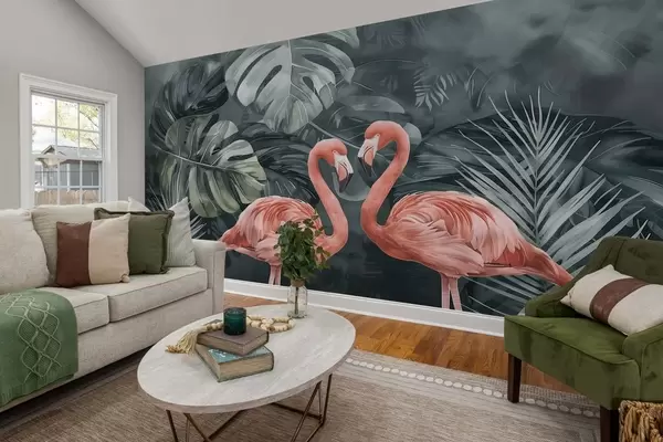 Fototapeta Para flamingów wśród tropikalnych roślin Nr w09687