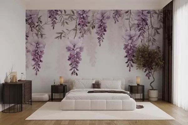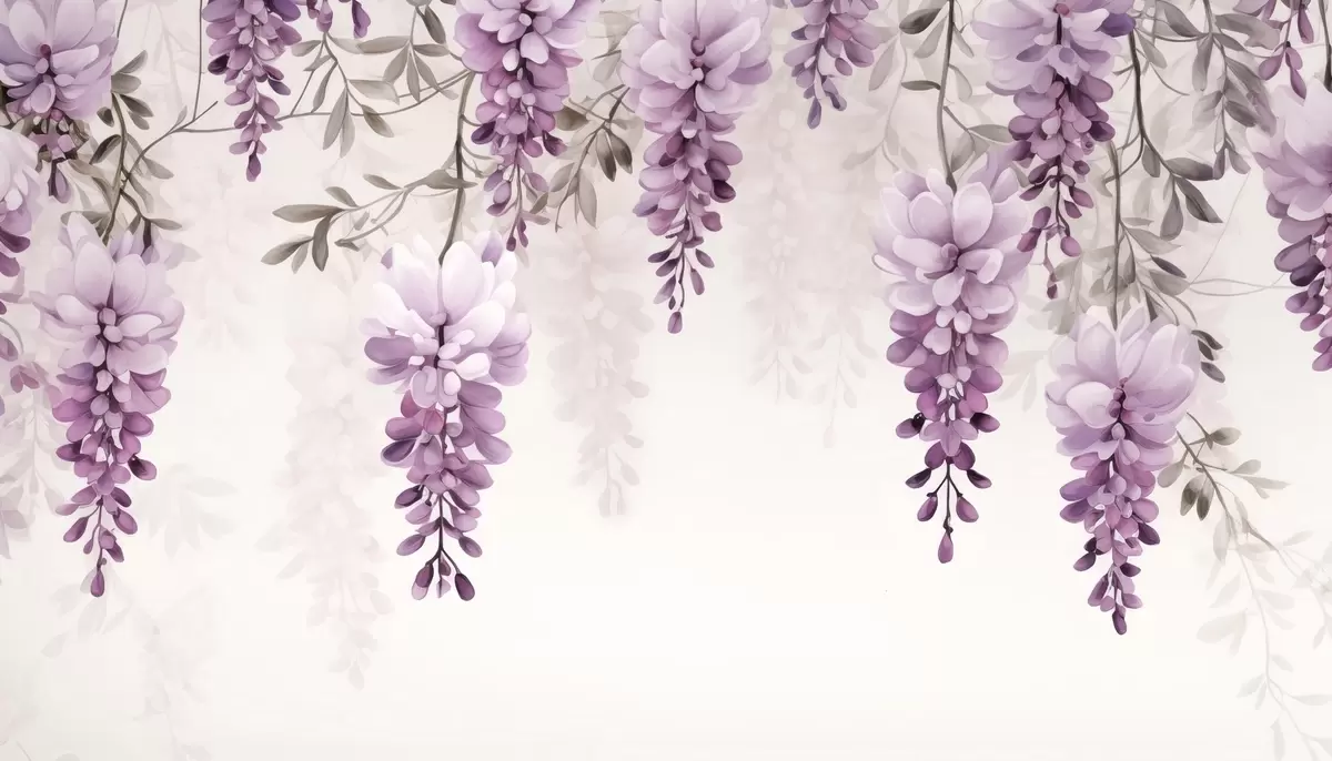 Fototapeta Delikatne, duże gałęzie lawendy wiszące na ścianie, imitacja akwareli Nr w09690