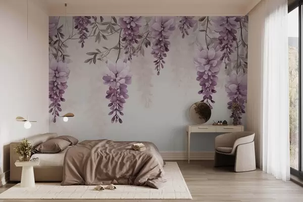 Fototapeta Delikatne, duże gałęzie lawendy wiszące na ścianie, imitacja akwareli Nr w09690