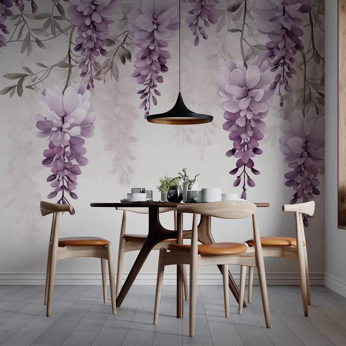 Fototapeta Delikatne, duże gałęzie lawendy wiszące na ścianie, imitacja akwareli Nr w09690