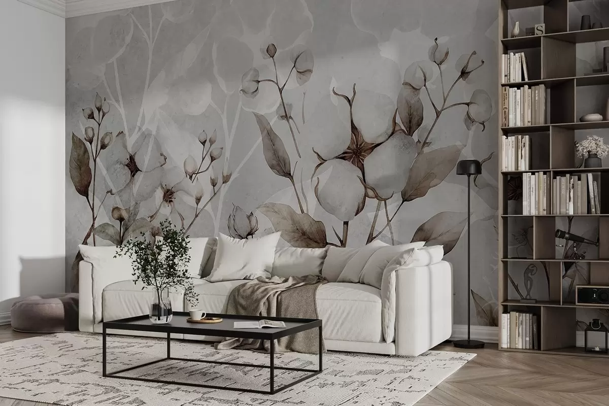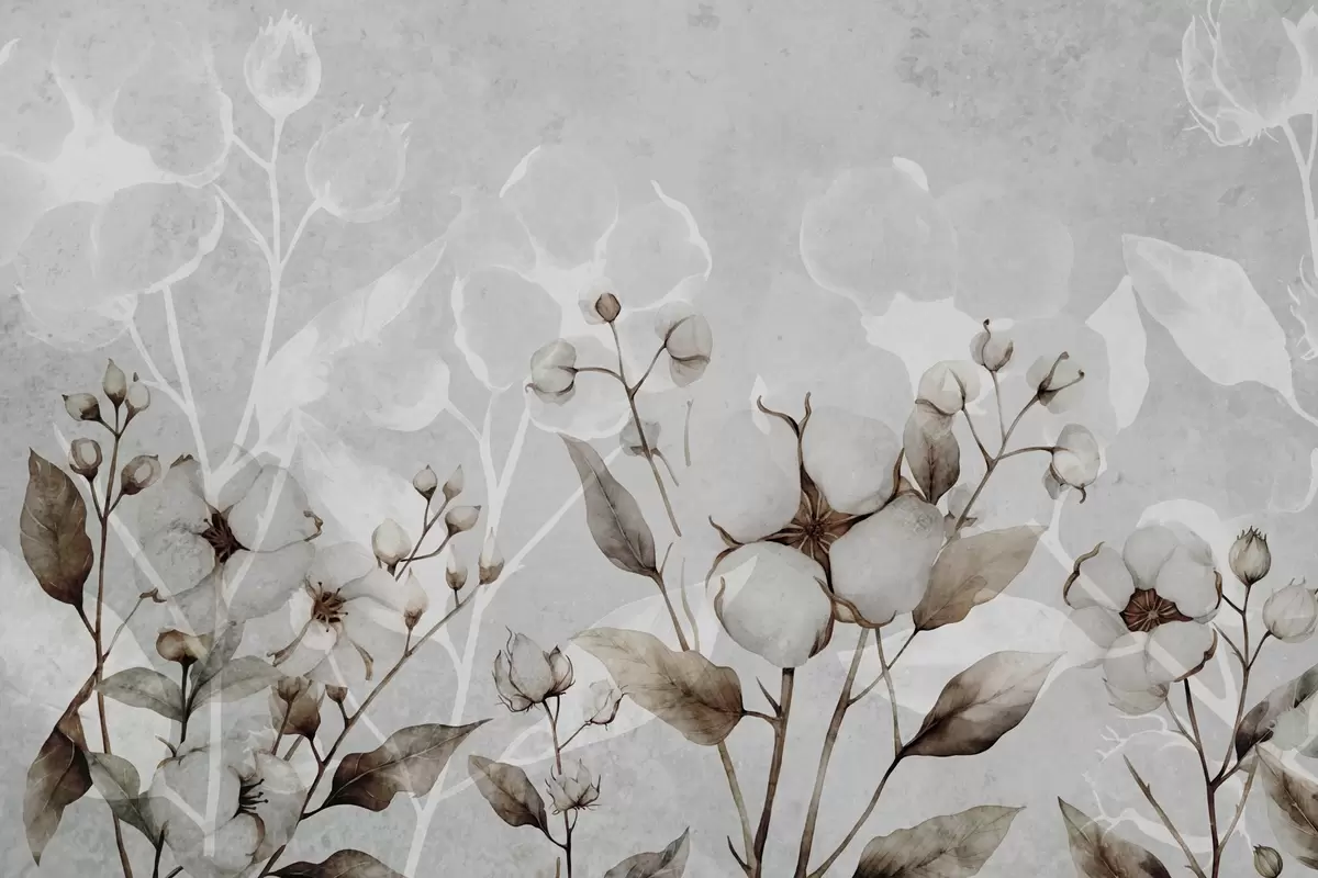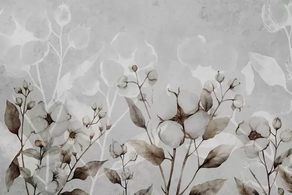 Fototapeta Duże kwiaty bawełny na jasnoszarym tle Nr w09691