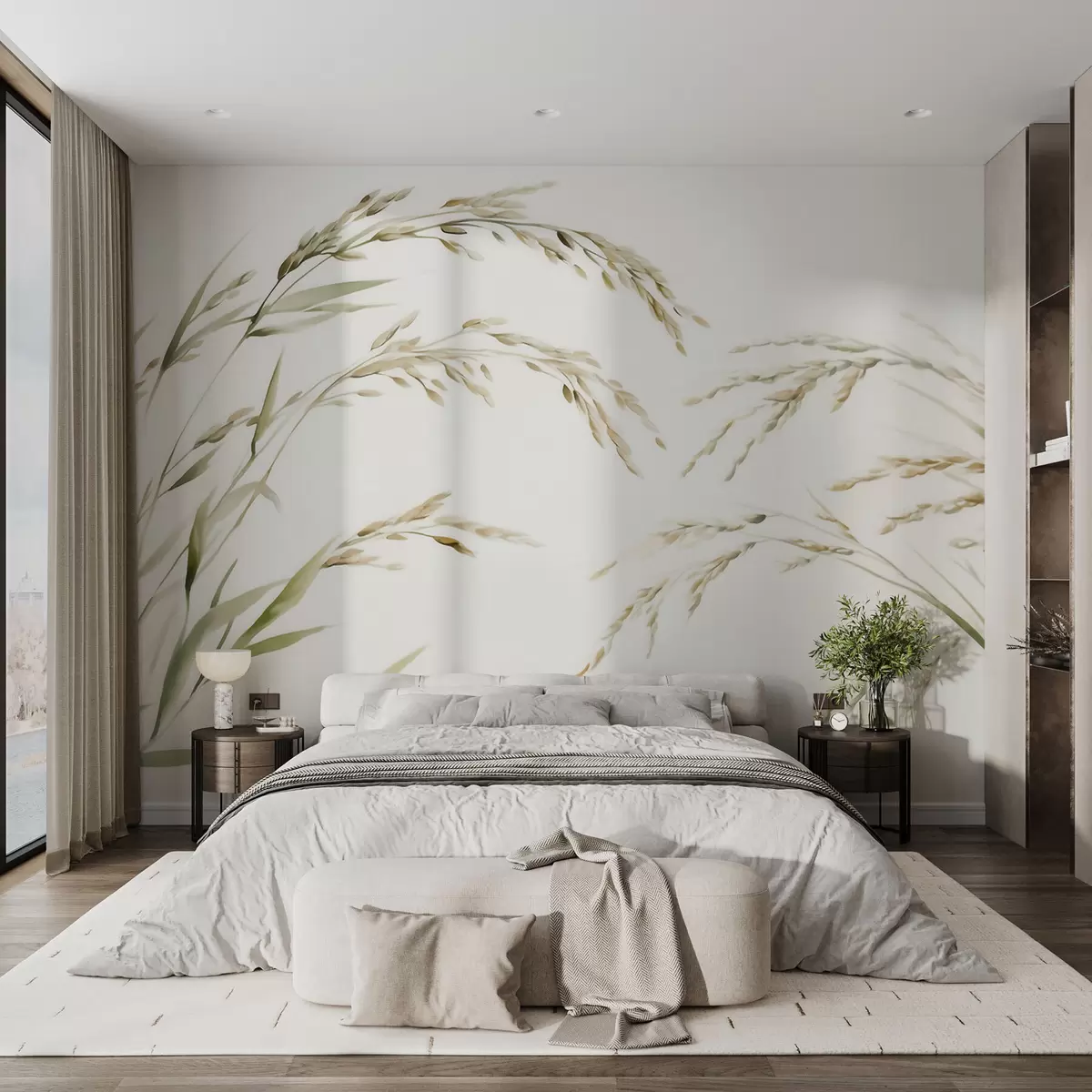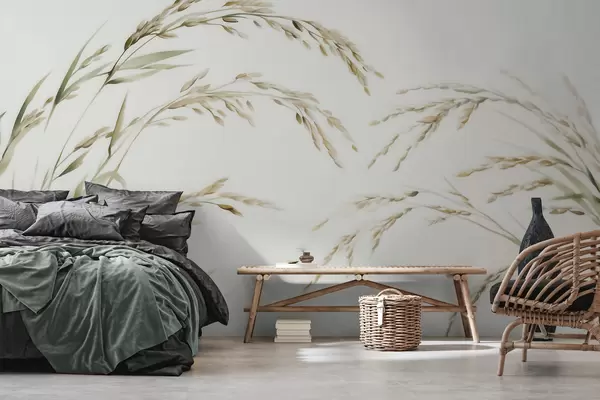 Fototapeta Delikatne trawy zbożowe w pastelowych odcieniach z delikatnym efektem akwareli Nr w09712