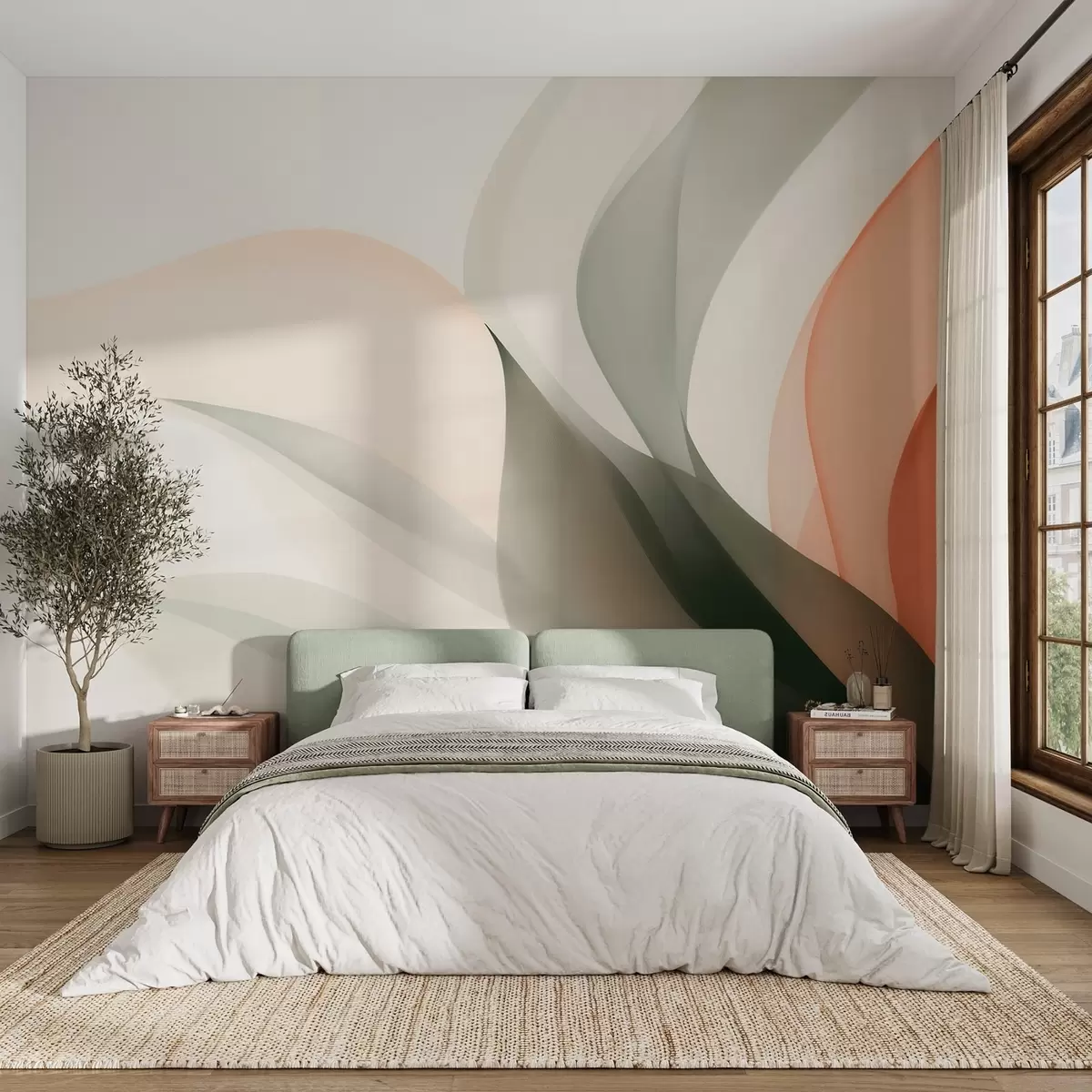 Fototapeta Abstrakcyjne pastelowe fale w odcieniach pomarańczowym i zielonym Nr w09718