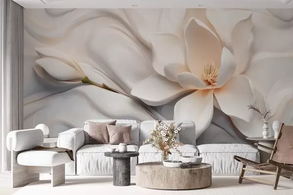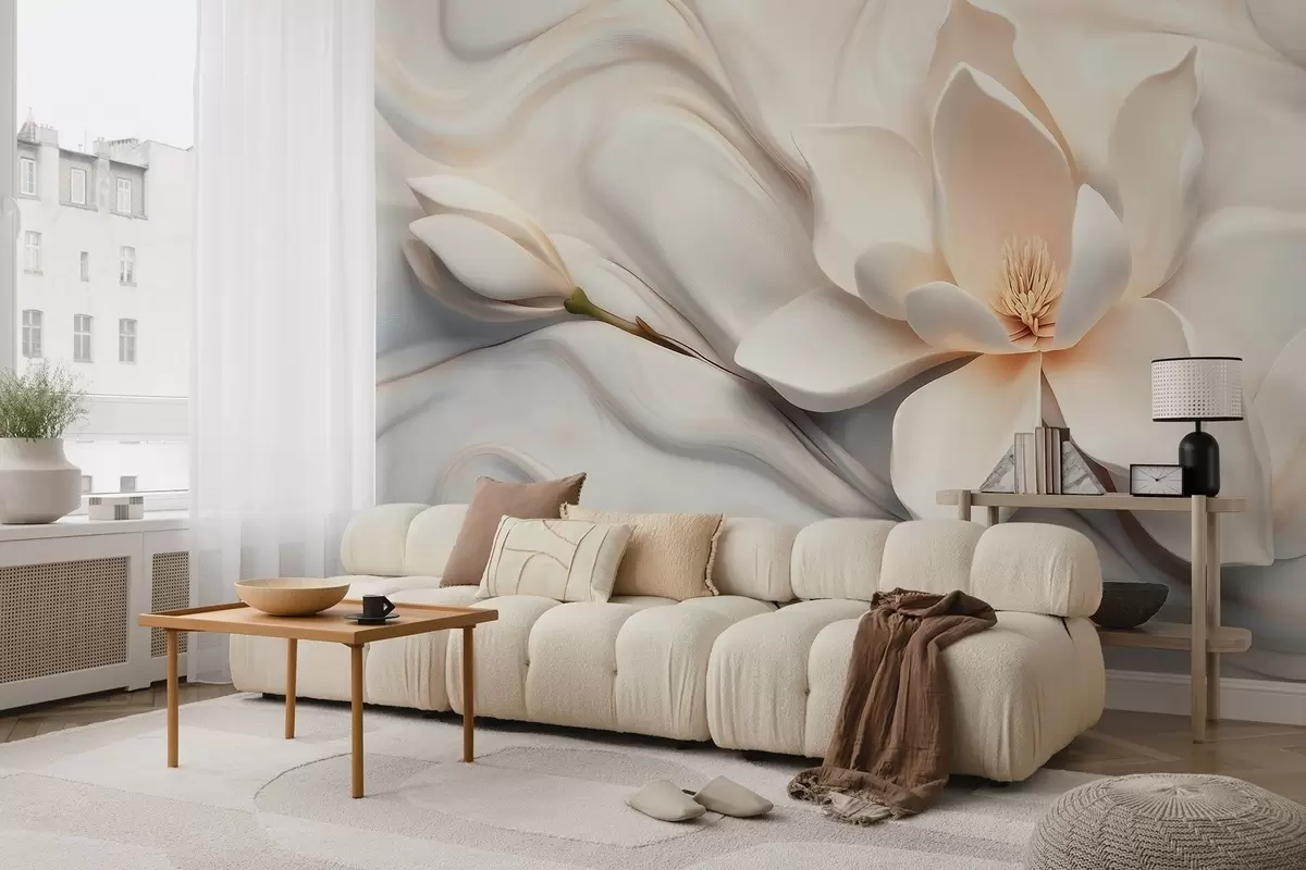 Fototapeta Trójwymiarowa biała magnolia z imitacją marmurowej faktury w reliefie Nr w09729
