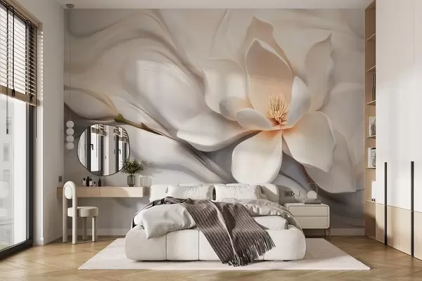 Fototapeta Trójwymiarowa biała magnolia z imitacją marmurowej faktury w reliefie Nr w09729
