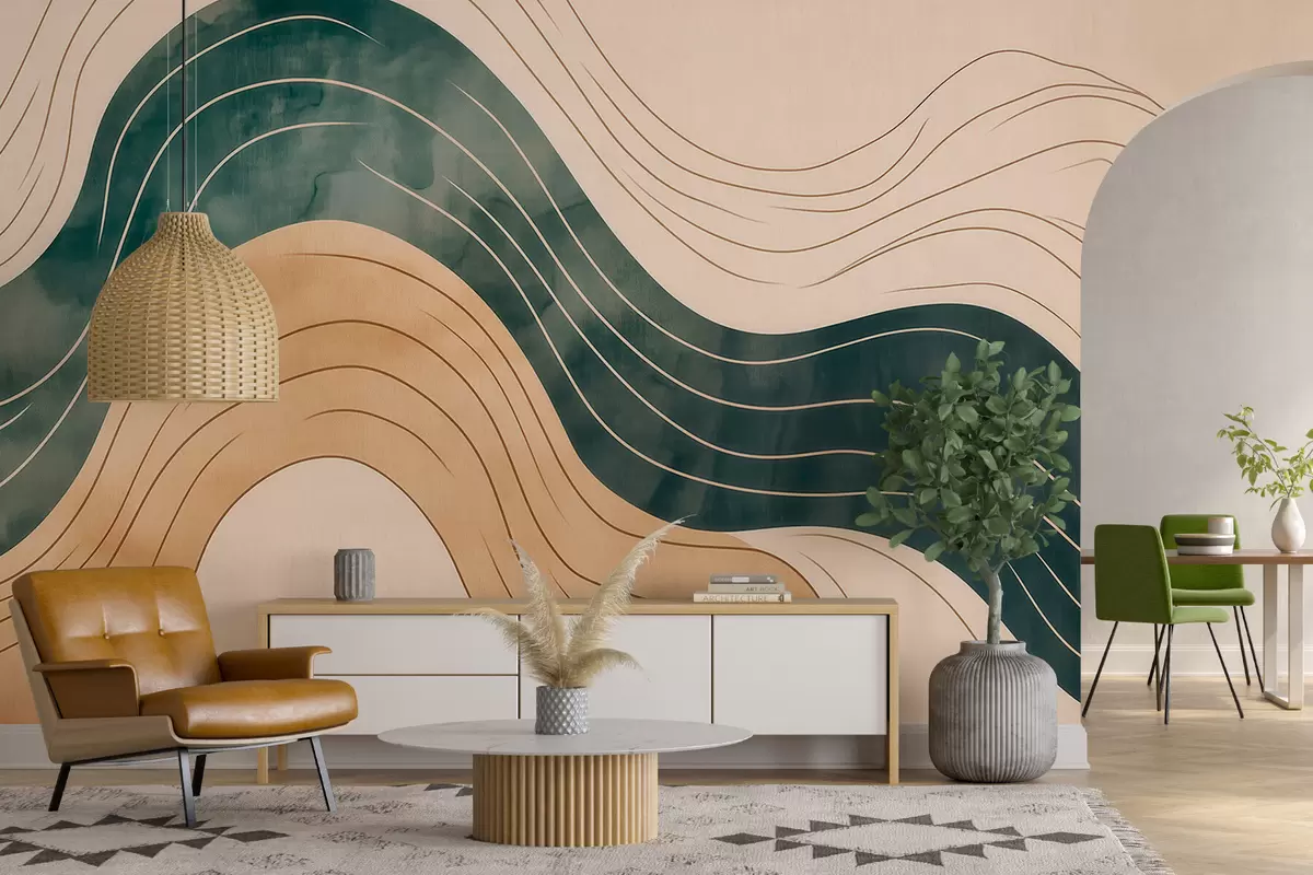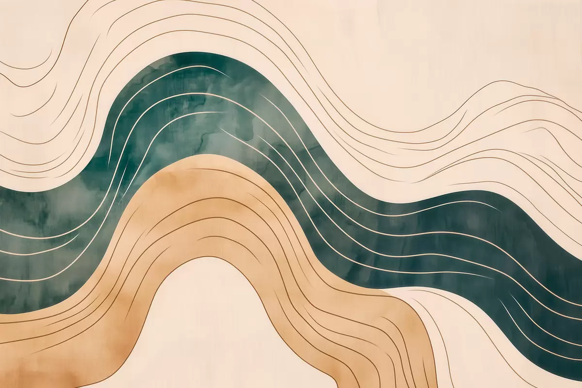Fototapeta Abstrakcyjne, faliste linie w odcieniach naturalnego piasku i szmaragdu Nr w09732