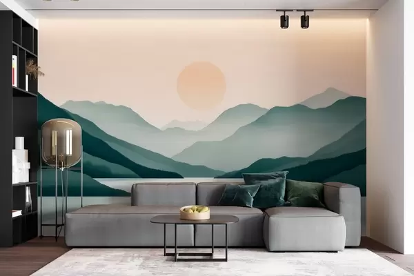 Fototapeta Spokojny górski krajobraz ze słońcem nad jeziorem Nr w09735