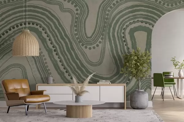 Fototapeta Abstrakcyjne zielone i beżowe faliste linie i kropki, nowoczesna sztuka teksturowana Nr w09747
