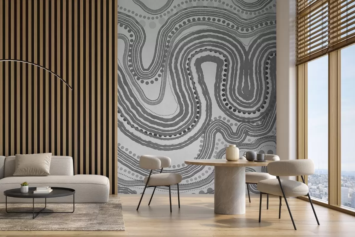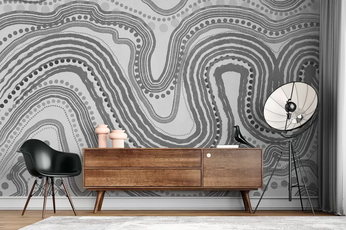 Fototapeta Abstrakcyjne ciemnoszare faliste linie i kropki, nowoczesna sztuka teksturowana Nr w09747v2