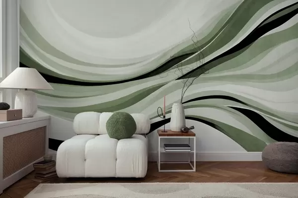 Fototapeta Abstrakcyjne faliste linie w odcieniach zieleni i czerni na jasnym tle, teksturowana grafika Nr w09748v1