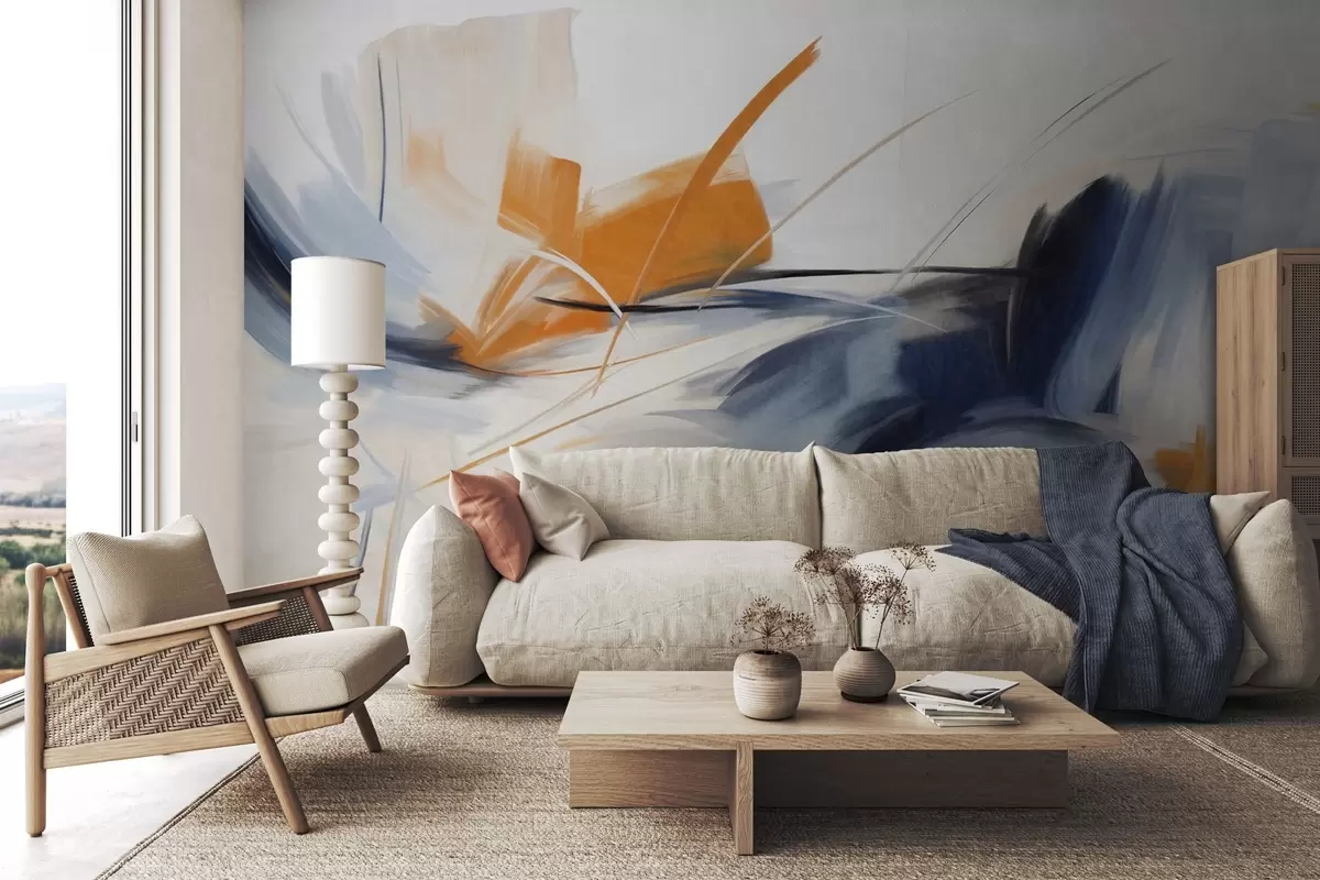 Fototapeta Styl malarstwa abstrakcyjnego z pomarańczowymi i niebieskimi teksturowanymi pociągnięciami pędzla Nr w09755