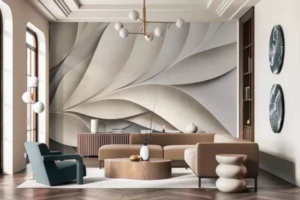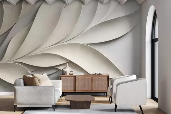 Fototapeta Abstrakcyjne liście w kolorze beżowym i szarym, teksturowana sztuka nowoczesna Nr w09769