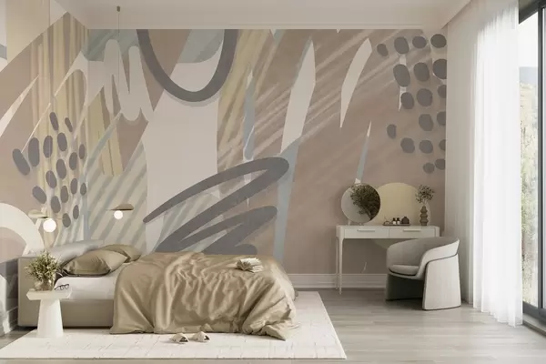 Fototapeta Abstrakcyjny wzór o fakturze, zawierający organiczne kształty, bazgroły i kropki w stonowanych pastelowych kolorach Nr w09774