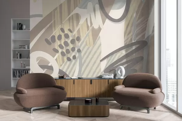 Fototapeta Abstrakcyjny wzór o fakturze, zawierający organiczne kształty, bazgroły i kropki w stonowanych pastelowych kolorach Nr w09774