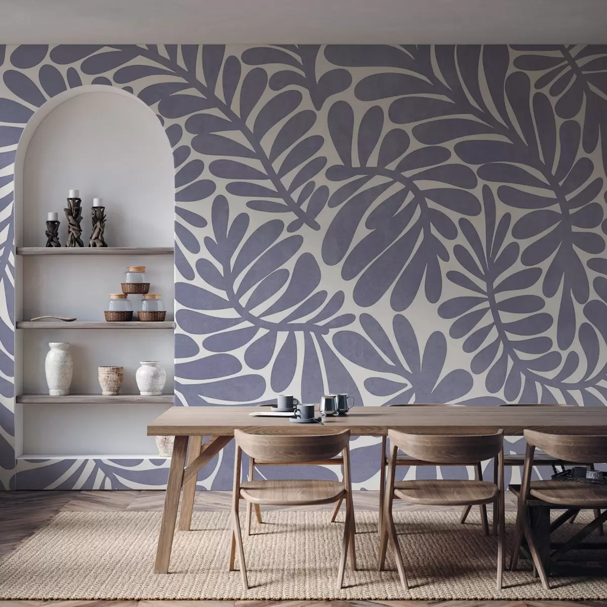 Fototapeta Stylizowane jasnoniebieskie liście na jasnym tle, grafika z fakturą Nr w09775v1