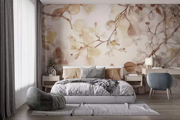 Fototapeta Lekko zwisające gałęzie w beżowych odcieniach w stylu akwareli Nr w09795