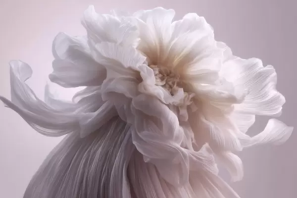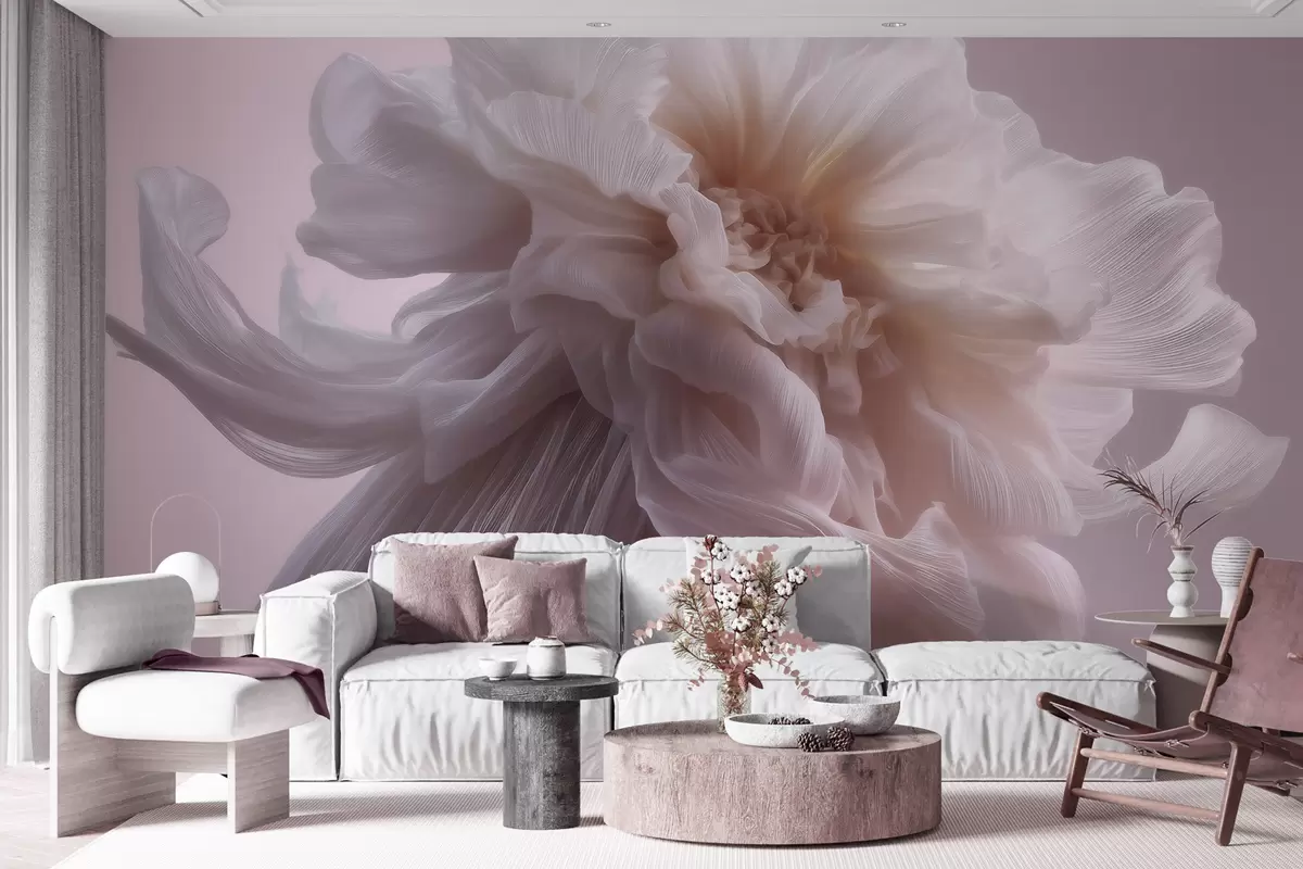 Fototapeta Trójwymiarowy kwiat z jedwabiu w delikatnych odcieniach różu i beżu Nr w09809
