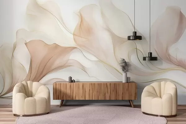 Fototapeta Abstrakcyjna, płynna faktura w odcieniach brzoskwiniowym i kremowym z delikatnymi liniami Nr w09815